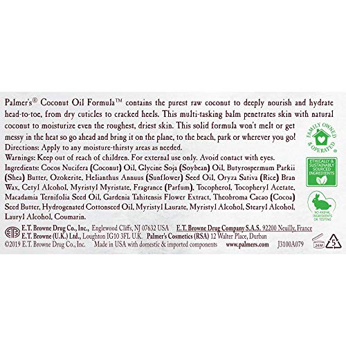 Hydrate and replenish skin with Palmer's Coconut Oil Formula daily body balm, crafted with antioxidant-rich Coconut Oil and Green Coffee Extract for radiant, healthy-looking skin. This moisturizing body lotion for dry skin delivers luxurious long lasting moisture for decadently pampered skin all day long. Proudly made in U.S.A., Palmer's has been a trusted brand for over 180 years, providing high-quality natural products that are passed down from generation to generation. America's #1 Coconut Oil Skin Care brand Palmer's Coconut Oil Formula uses the highest quality natural ingredients for superior moisturization head-to-toe.