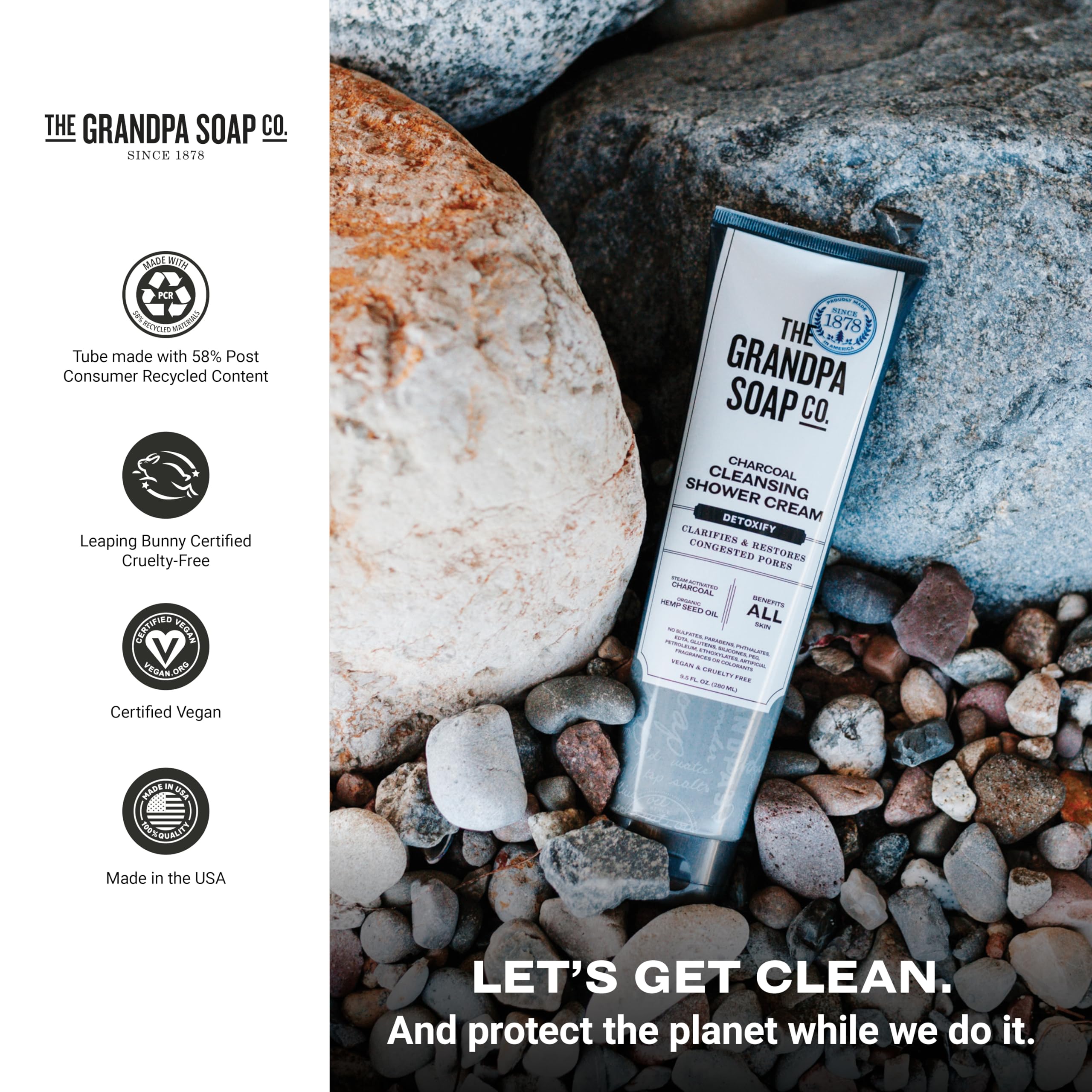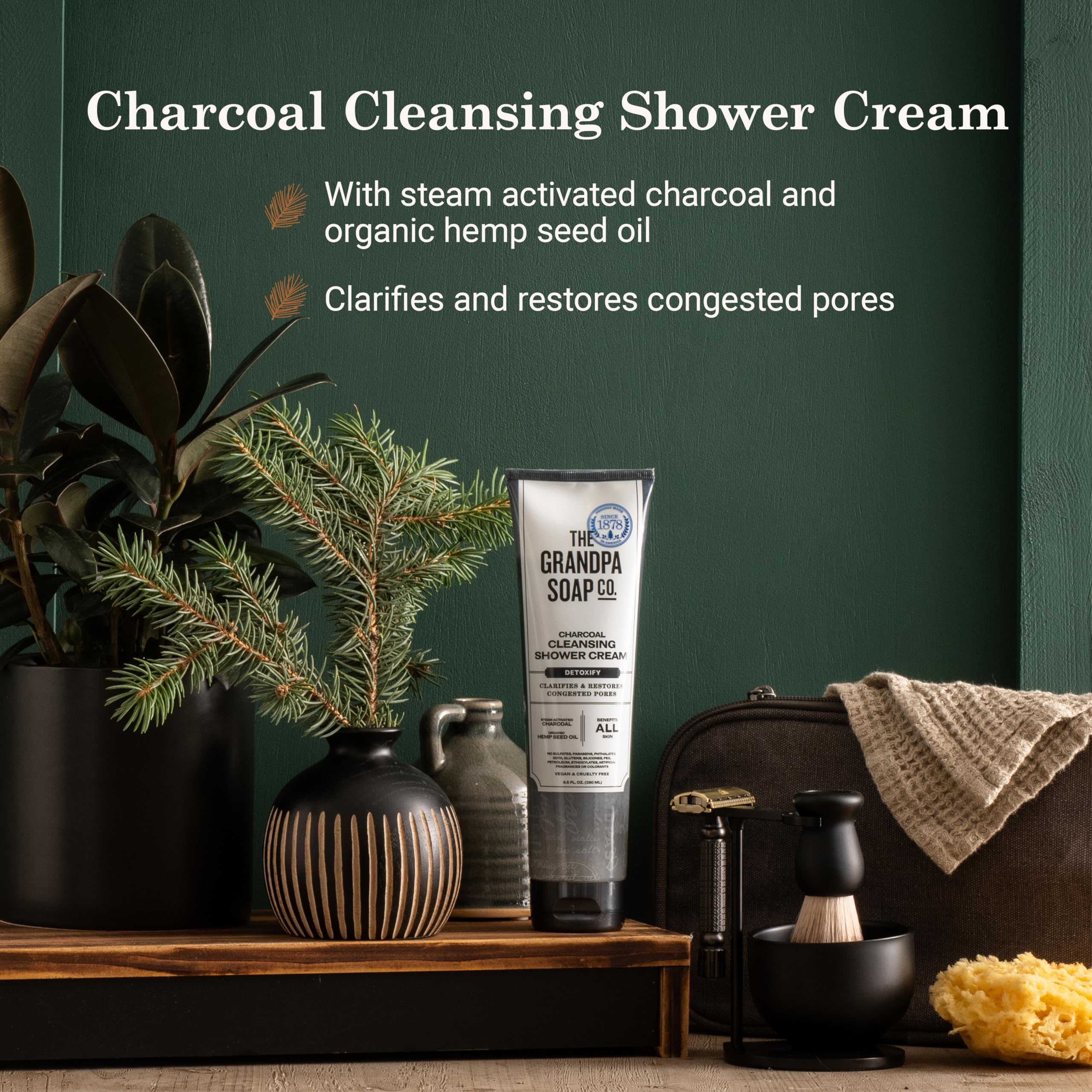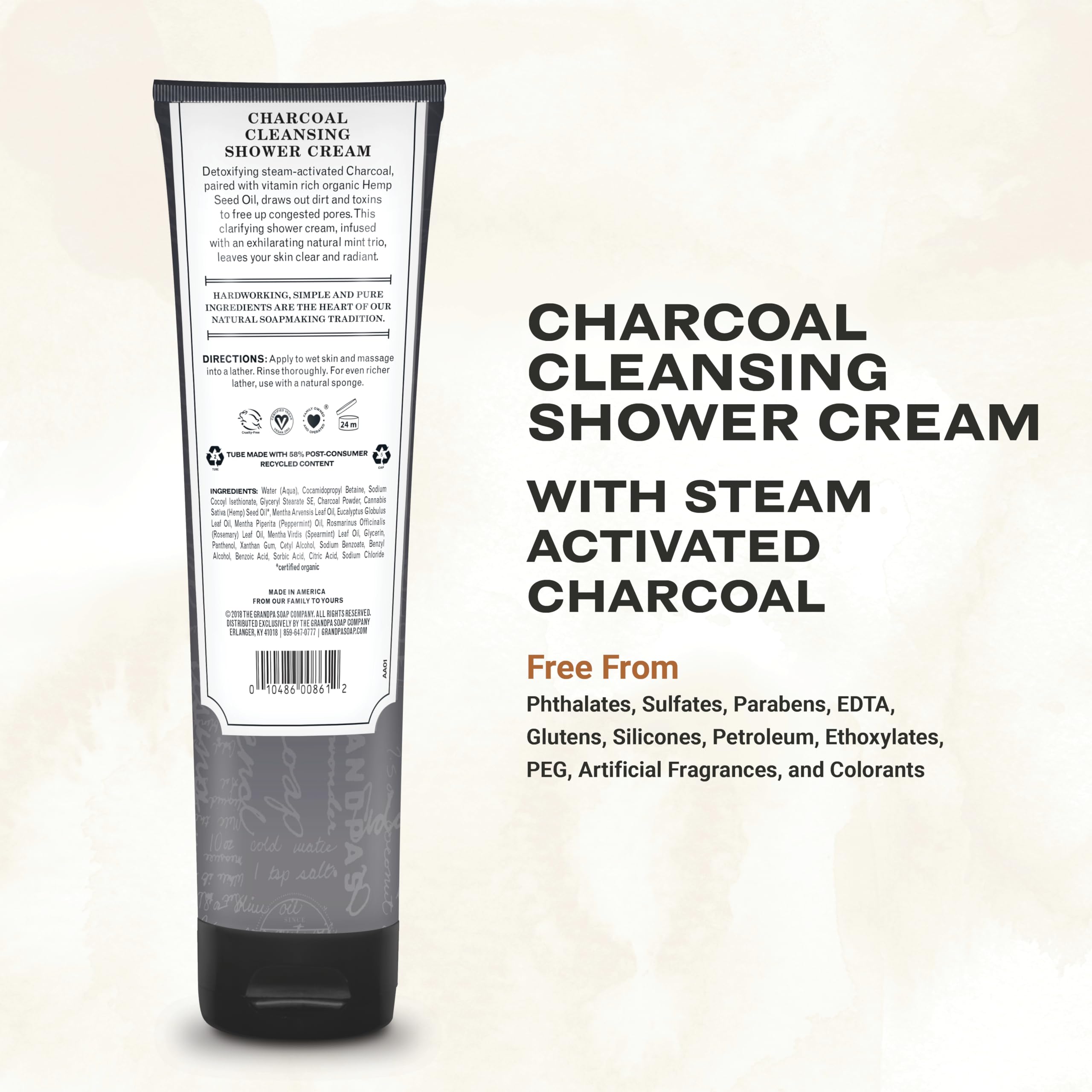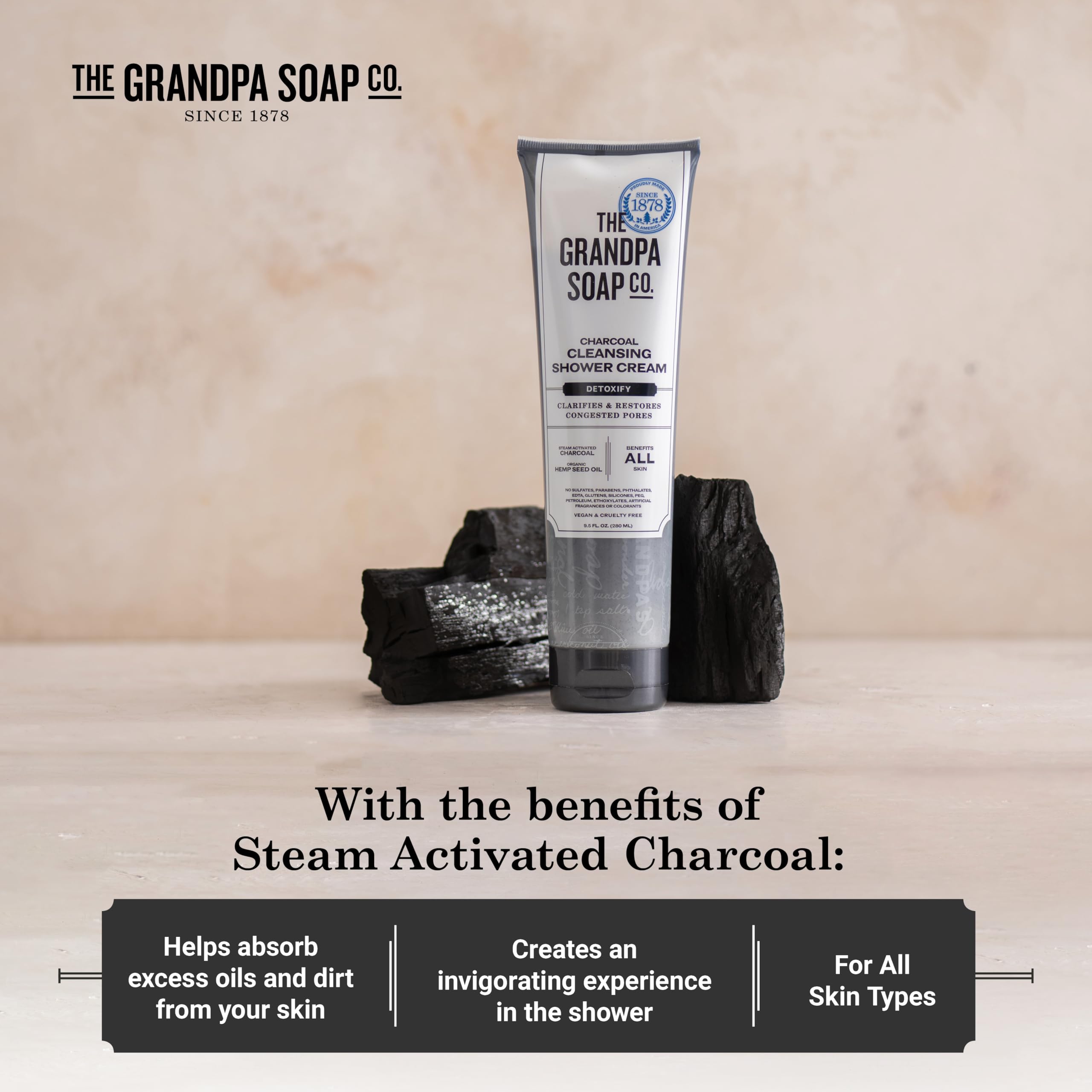 The Grandpa Soap Company Charcoal Cleansing Shower Cream - Clarifies & Restores Congested Pores, With Activated Charcoal & Hemp Seed Oil, Detoxifies, 9.5 Fl Oz