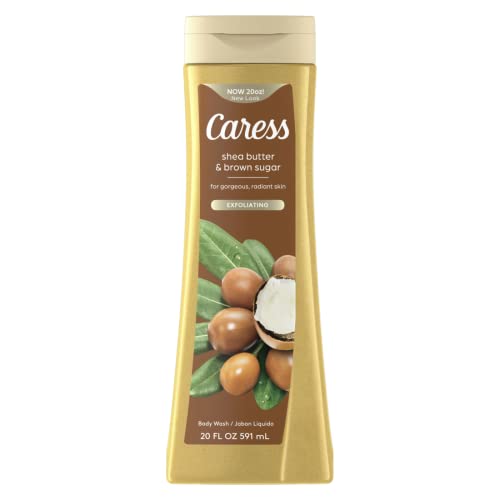 Caress Body Wash For Gorgeous, Radiant Skin Shea Butter & Brown Sugar Hydrating and Exfoliating Body Wash 20 fl oz