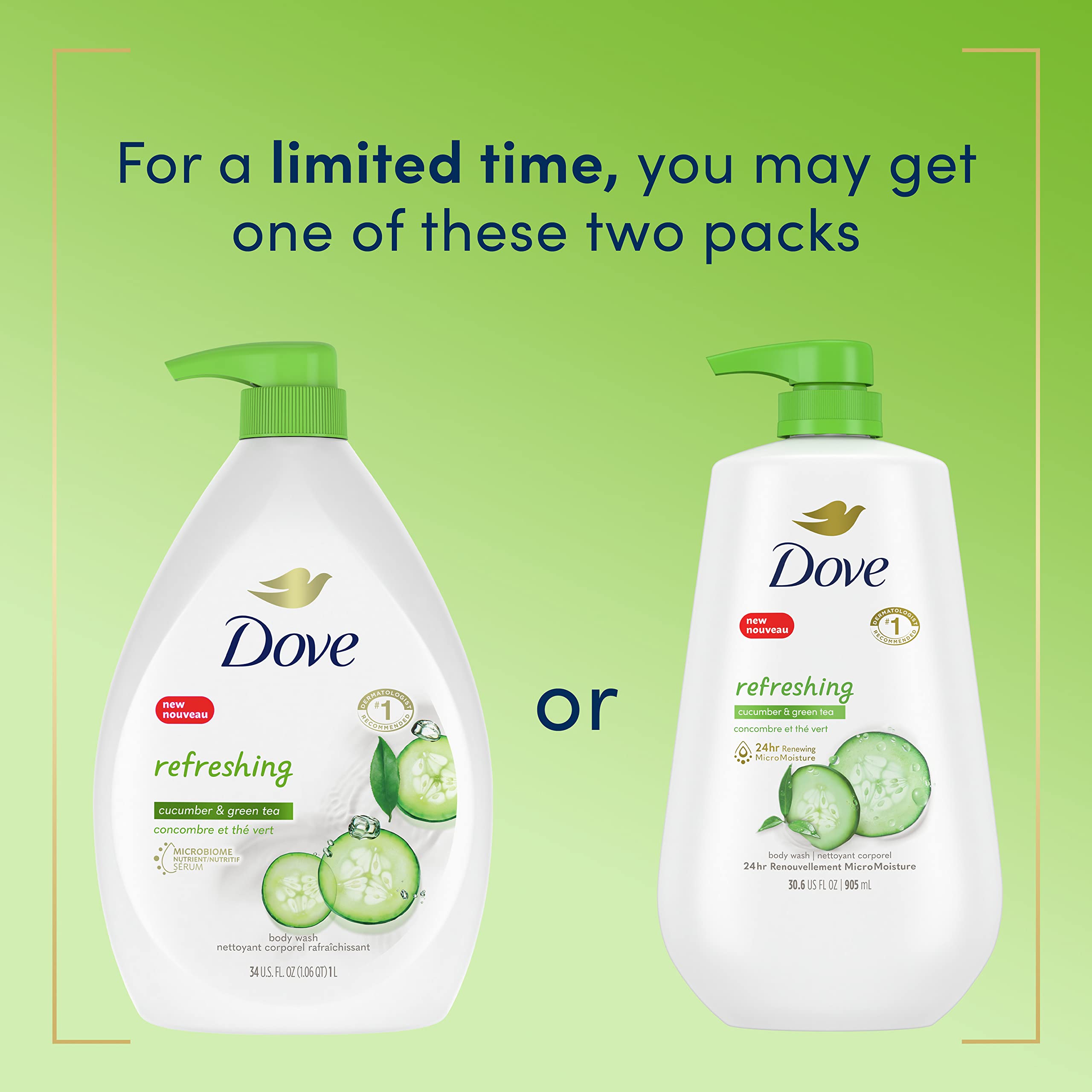 Dove Body Wash with Pump Refresh Cucumber and Green Tea for 24hr Lotion-Soft Skin Moisturizing Skin Cleanser with No Sulfates No Parabens 30.6 oz