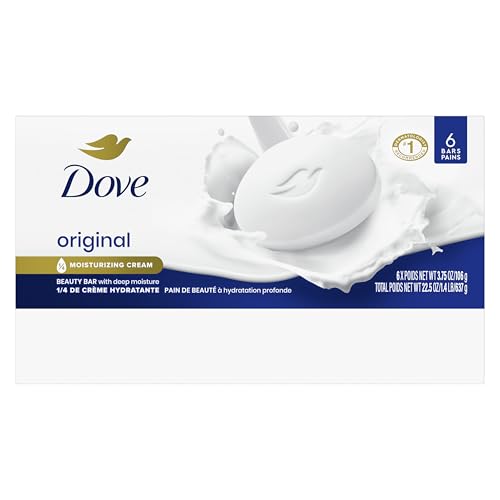 Dove Beauty Bar Soap Original, 6 Bars for Soft, Smooth Skin, with 1/4 Moisturizing Cream 3.75 oz