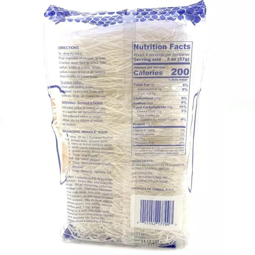 Dynasty Sai fun Bean Thread. No Artificial Flavors, Preservatives. The product temperature is Ambient Room Temperature.
