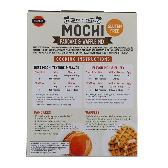 Get ready to transform your breakfast and brunch with our revolutionary J-Basket Mochi Pancake & Waffle Mix! Experience the irresistible fusion of classic comfort and delightful Japanese chewiness in every bite. Crafted with premium glutinous rice flour, this unique mix creates pancakes and waffles that are wonderfully crispy on the outside and incredibly soft, airy, and delightfully chewy on the inside. Say goodbye to ordinary breakfasts and hello to a whole new texture sensation that will leave you craving more. Our easy-to-use mix makes it simple to whip up perfect mochi-inspired treats in minutes. Just add water and you're on your way to fluffy pancakes or golden waffles with that signature, satisfying chew. Perfect for a special weekend brunch, a fun family breakfast, or a unique dessert, the J-Basket Mochi Pancake & Waffle Mix is sure to become a new favorite in your pantry. Top them with fresh fruit, syrup, whipped cream, or even savory ingredients for an unforgettable meal.
