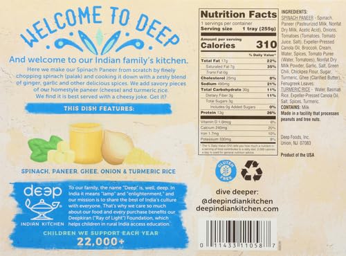 Deep Indian Kitchen, Palak Paneer, 10oz (Frozen)