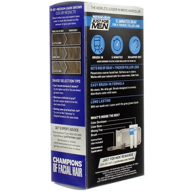 Just For Men Mustache & Beard Color Gel (95 Medium-Dark Brown) is designed to deliver natural-looking color with full coverage for facial hair. This easy-to-use gel formula targets gray hairs, blending seamlessly with existing hair for a well-groomed and even look. The fast-acting application works in just five minutes, providing long-lasting results. Formulated with conditioning agents, it helps keep facial hair soft and healthy-looking. Ideal for mustaches, beards, and sideburns, this kit includes everything needed for a precise and mess-free application.