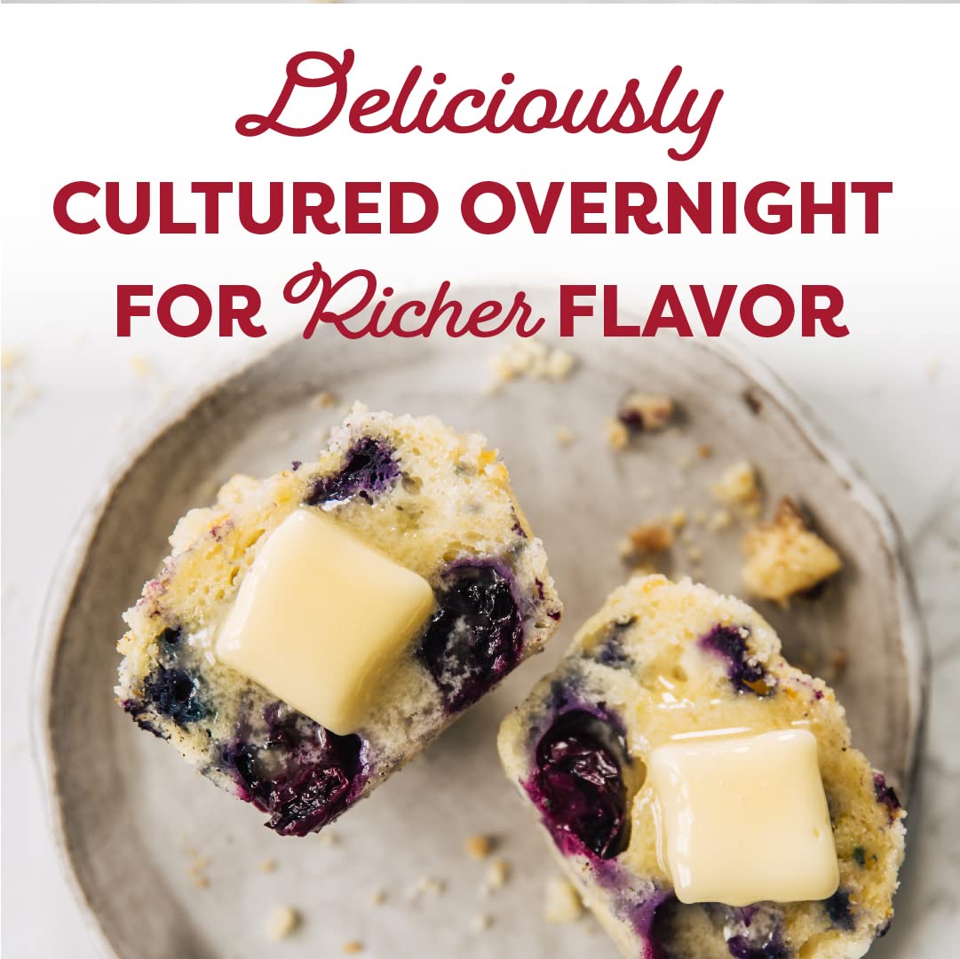 To make Vermont Creamery Cultured Butter, our expert buttermakers carefully add live bacterial cultures to fresh Vermont Cream. The cream ferments overnight and by morning, it's thickened and wonderful notes of buttermilk and hazelnuts have developed. Making cultured butter is much like making wine, you want to ferment your cream slowly just like your grapes. The longer you culture the better. The end result is deliciously cultured, ridiculously creamy butter perfect for baking a flakier crust, slathering on fresh bread, or sauteeing the perfect piece of fish.