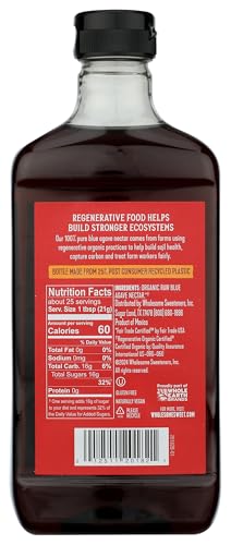 Wholesome Organic Raw Blue Agave Nectar is a naturally sweet, low-glycemic alternative to refined sugar, made from organically grown blue agave. This raw nectar is minimally processed to preserve its natural characteristics and smooth, mild flavor. Perfect for sweetening coffee, tea, smoothies, baked goods, sauces, and cocktails, it dissolves easily in hot or cold beverages. The convenient squeeze bottle allows for mess-free pouring and precise control.