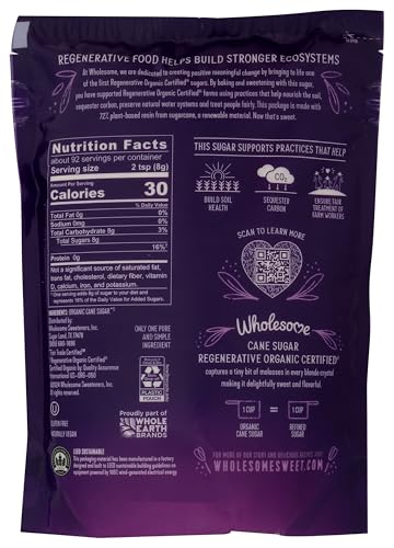 Wholesome Sweeteners 26-Ounce Cane Sugar, Fair Trade, Non GMO, Gluten Free & Vegan, for Baking and Sweetening, 1 Pack