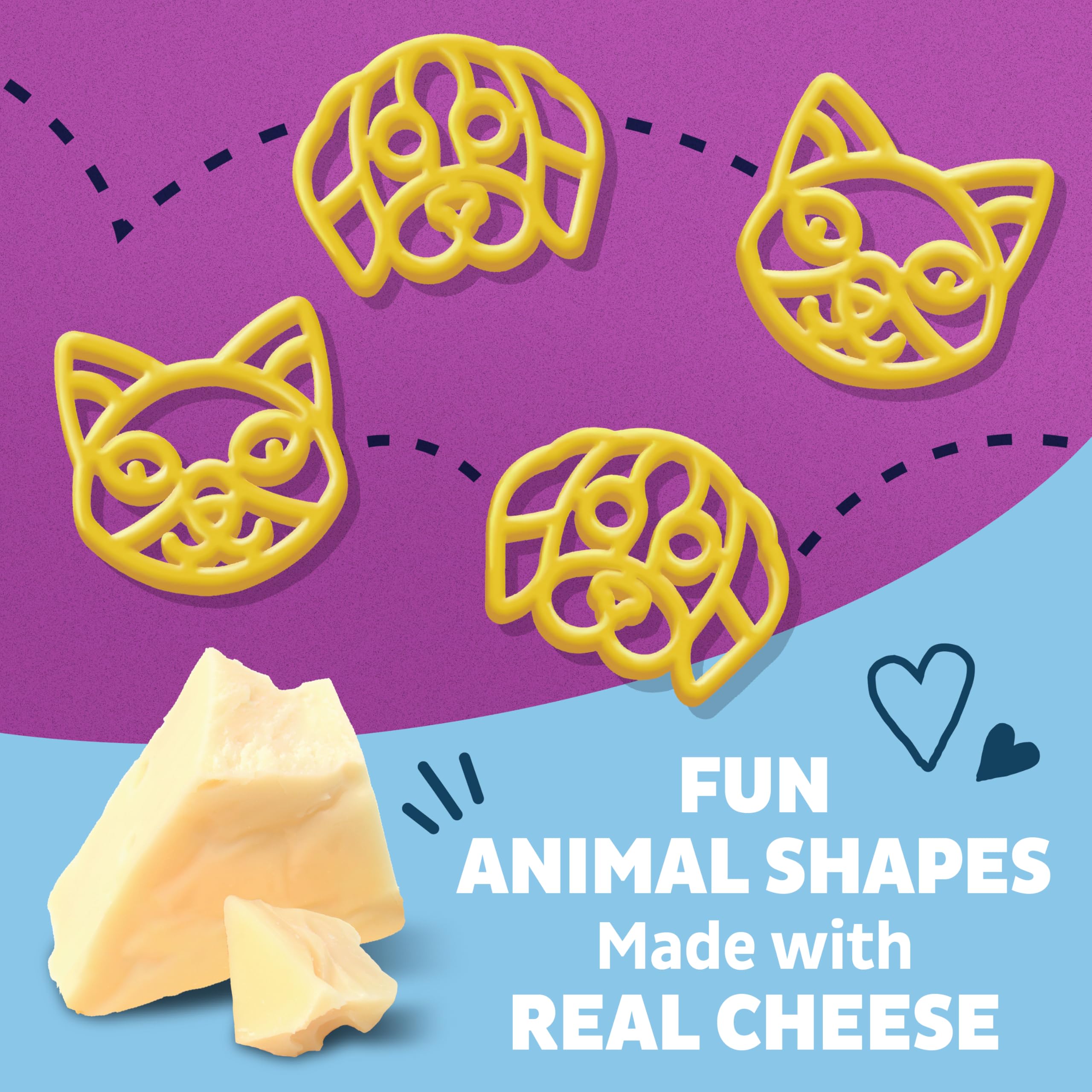 Bring creamy, cheesy goodness to your family table! Annie's Puppies and Kitties and White Cheddar is made with real cheese plus organic pasta in adorable cat and dog shapes. Annie's pasta and cheese offers an adult and kids lunch, dinner, or snack addition with irresistible flavor. Each serving provides 8g whole grain (at least 48g recommended daily) - see Nutrition Facts on box for sodium content. Just follow the steps on the package to create yum that's ready in about 16 minutes. Serve this favorite on its own, as a side dish, or alongside chicken nuggets. Two and a half servings per container. Annie's makes products in over 20 family-friendly categories, from fruit flavored snacks and cereal to mac and cheese. For busy bunnies and families on the go, we help make life a little easier and more delicious by spreading goodness through tasty foods and kindness to the planet. Contains Annie's Puppies and Kitties and White Cheddar, Made with Organic Pasta, 6 oz; Shelf-stable dried mix.