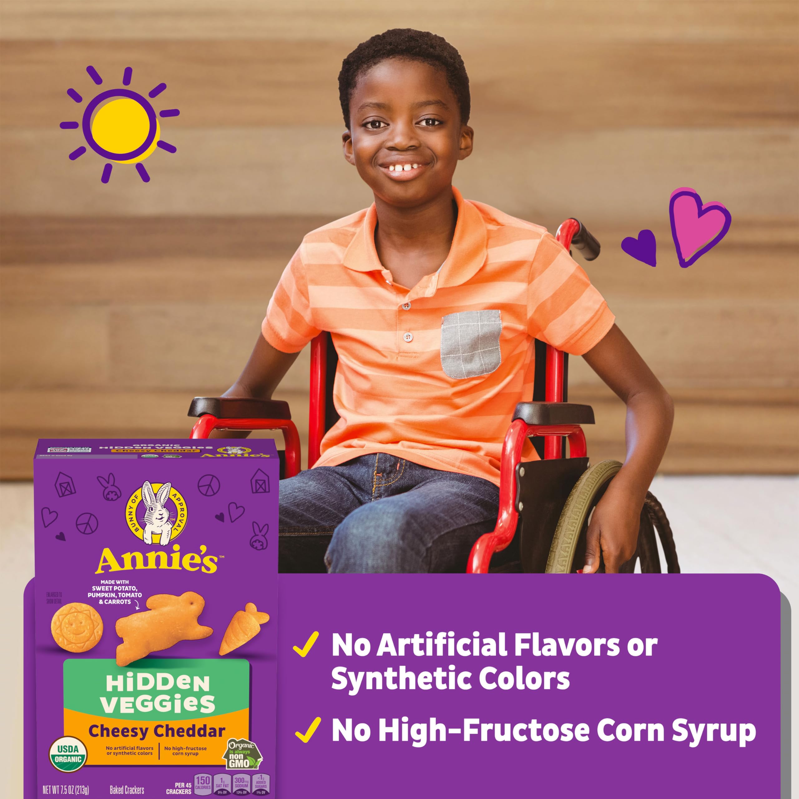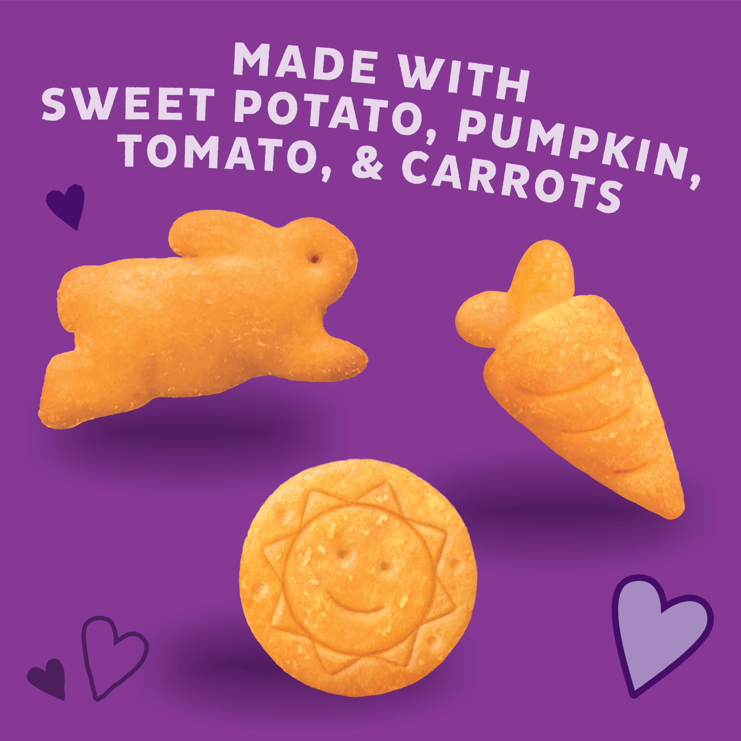 Sneak some wholesome vegetables into your child's diet with Annie's Cheesy Cheddar Crackers with organic hidden veggies. These organic snacks for kids are cheesy, crunchy, and made with sweet potato, pumpkin, tomato, and carrots. Kids will come hopping for the amazing taste, and you'll love the wholesome ingredients with no artificial flavors or synthetic colors, and no high fructose corn syrup. The cheese crackers come in fun bunnies, carrots and other shapes to make snack time a hoppy time. Pack these kids snacks in lunchboxes or backpacks, or take in the car for on-the-go goodness. Annie's makes products in over 20 family-friendly categories, from fruit flavored snacks and cereal to mac and cheese. For busy bunnies and families on the go, we help make life a little easier and more delicious by spreading goodness through tasty foods and kindness to the planet.