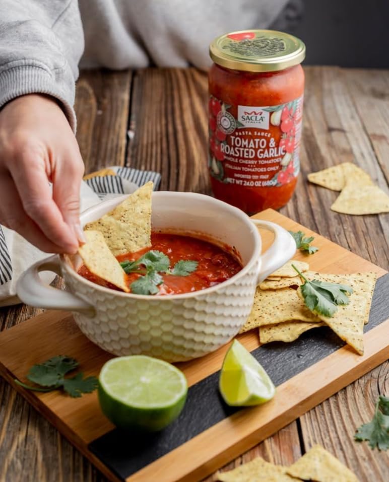 SACLA Cherry Tomato & Roasted Garlic Pasta Sauce with No Added Sugar | 100% Italian Grown Tomatoes with Slow Roasted Garlic | 24 oz Glass Jar | Imported from Italy | Non-GMO Authentic Italian Sauce
