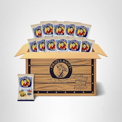 Chart a course for delicious snacking with Pirate’s Booty Aged White Cheddar Cheese Puffs These light and crispy puffs are baked, not fried, and made with real cheese for delicious flavor in every bite. With no artificial colors, gluten-free ingredients, and no peanuts or tree nuts, Pirate’s Booty puffs are a wholesome snack you can feel great about sharing. Perfect for packing in school lunches, enjoying at parties, or as movie night snacks. Make every snack time an adventure—stock up on Pirate’s Booty cheese puffs and let your crew snack like pirates.