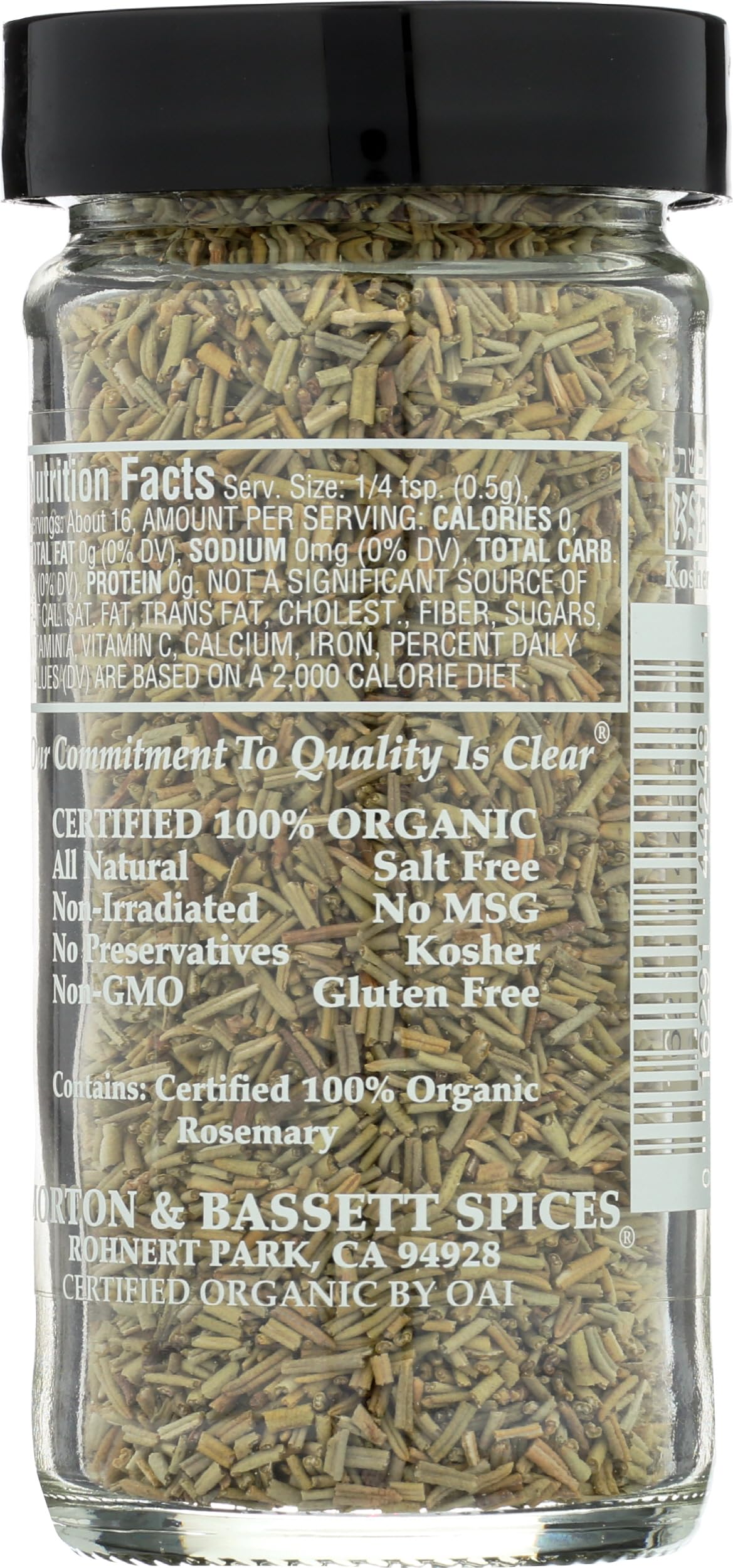 Morton & Bassett 100% Organic Rosemary | Aromatic Herb for Roasting, Soups & Breads | Gluten Free, Salt Free, Non-GMO | 0.8 oz Jar