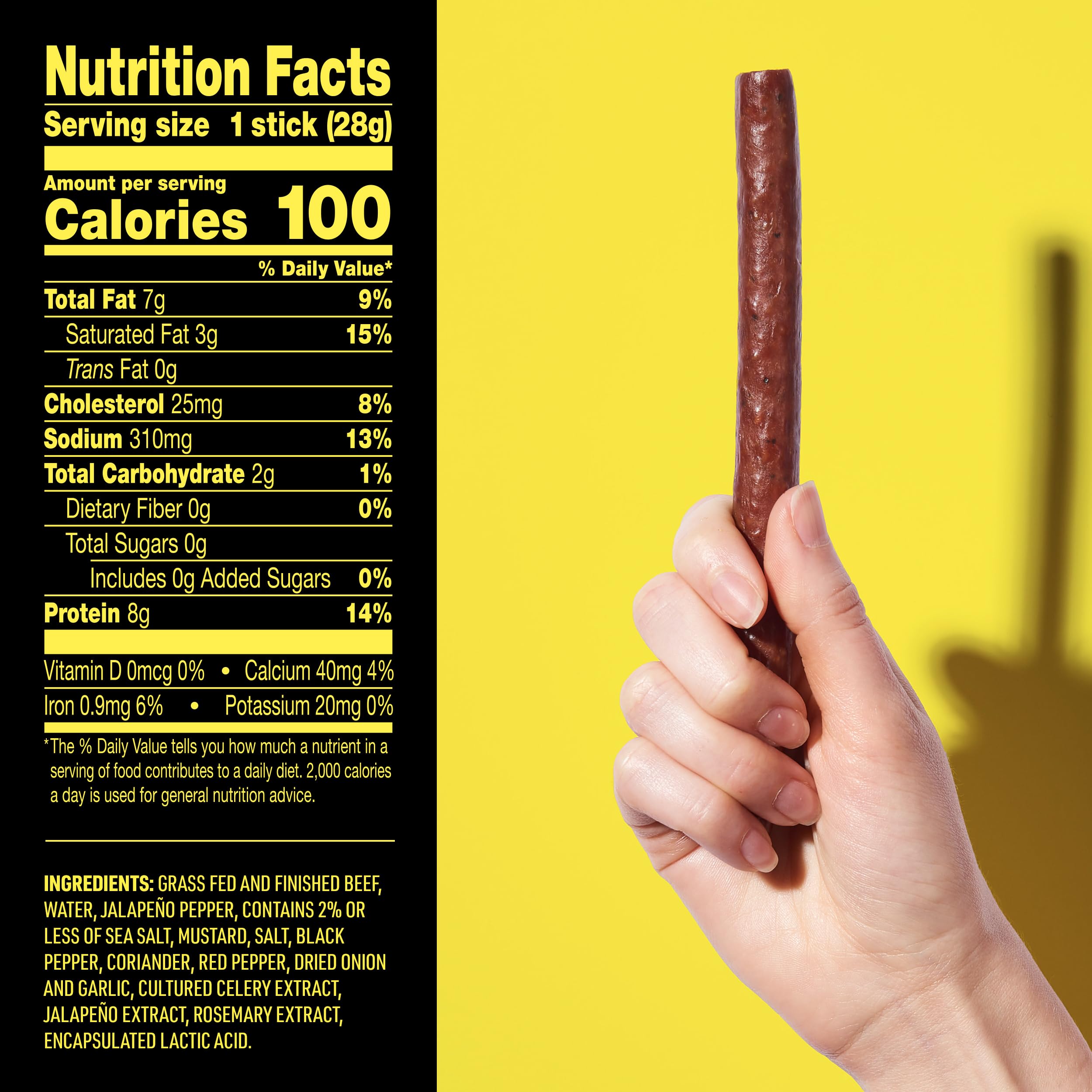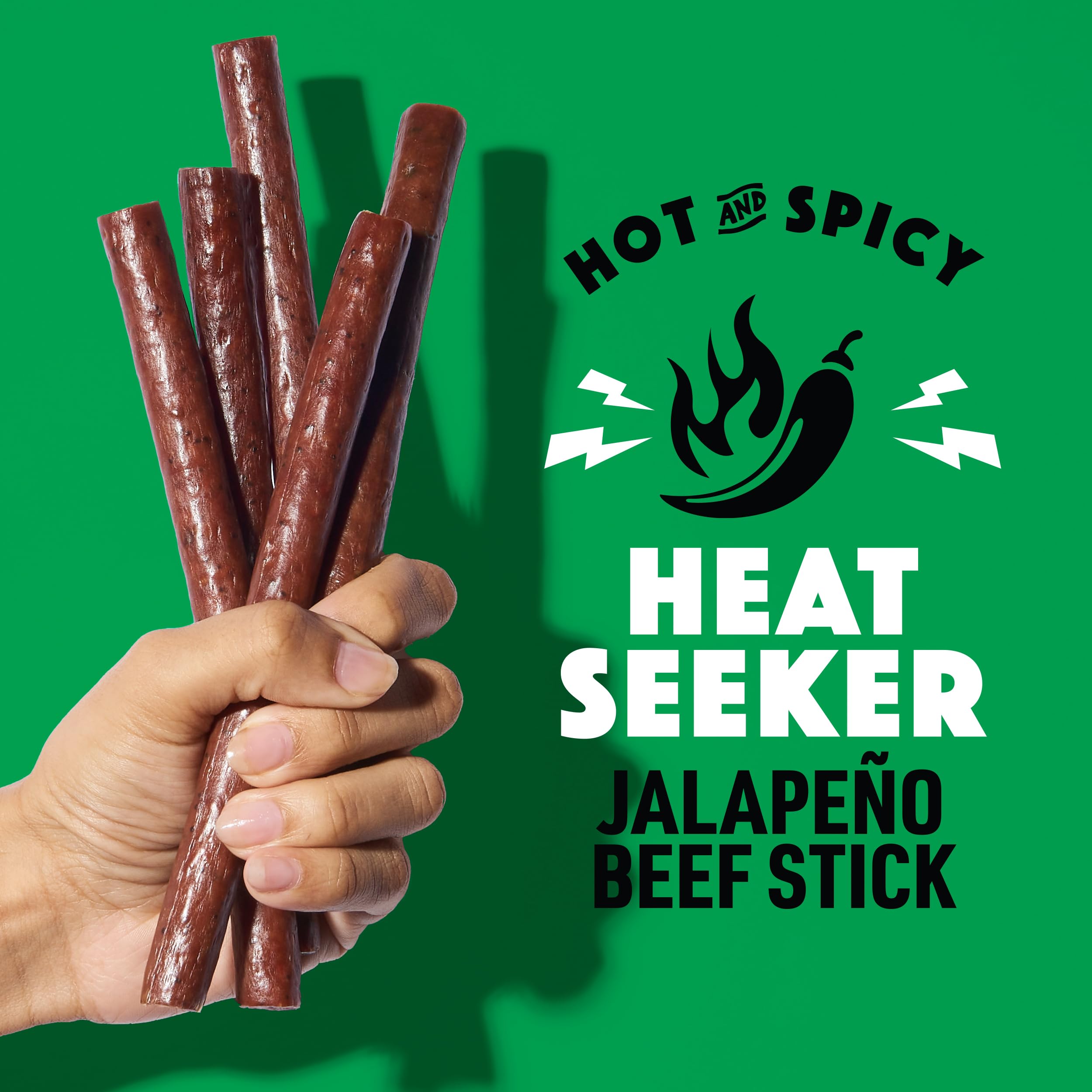 Turn up the heat with our Heat Seeker Jalape�o Beef Stick made with real ingredients and craveworthy flavor. This fiery protein snack is gluten free and has 8g of protein. When those afternoon cravings hit, Snack Fearlessly and devour the fiery, smoky, and savory explosion of taste � all with zero mess. It's verified by the Non-GMO Project to give you and your family confidence to Snack Fearlessly anytime, anywhere. Each mouth-blazing, on-the-go beef stick has a good source of protein, zero sugar, and is certified free from the top 9 allergens. *Certified Free From The Top 9 Allergens by MenuTrinfo: Peanuts, Tree Nuts, Wheat, Milk, Sesame, Eggs, Fish, Shellfish, and Soy.