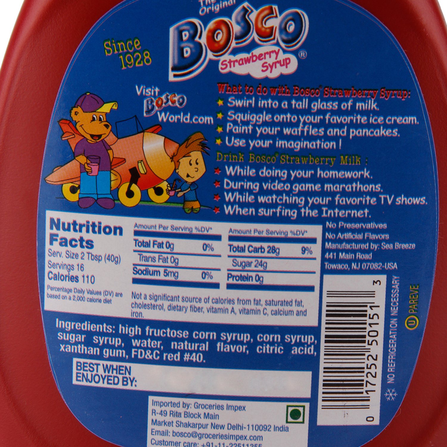 Bosco Strawberry Syrup - 22 oz Squeeze Bottle