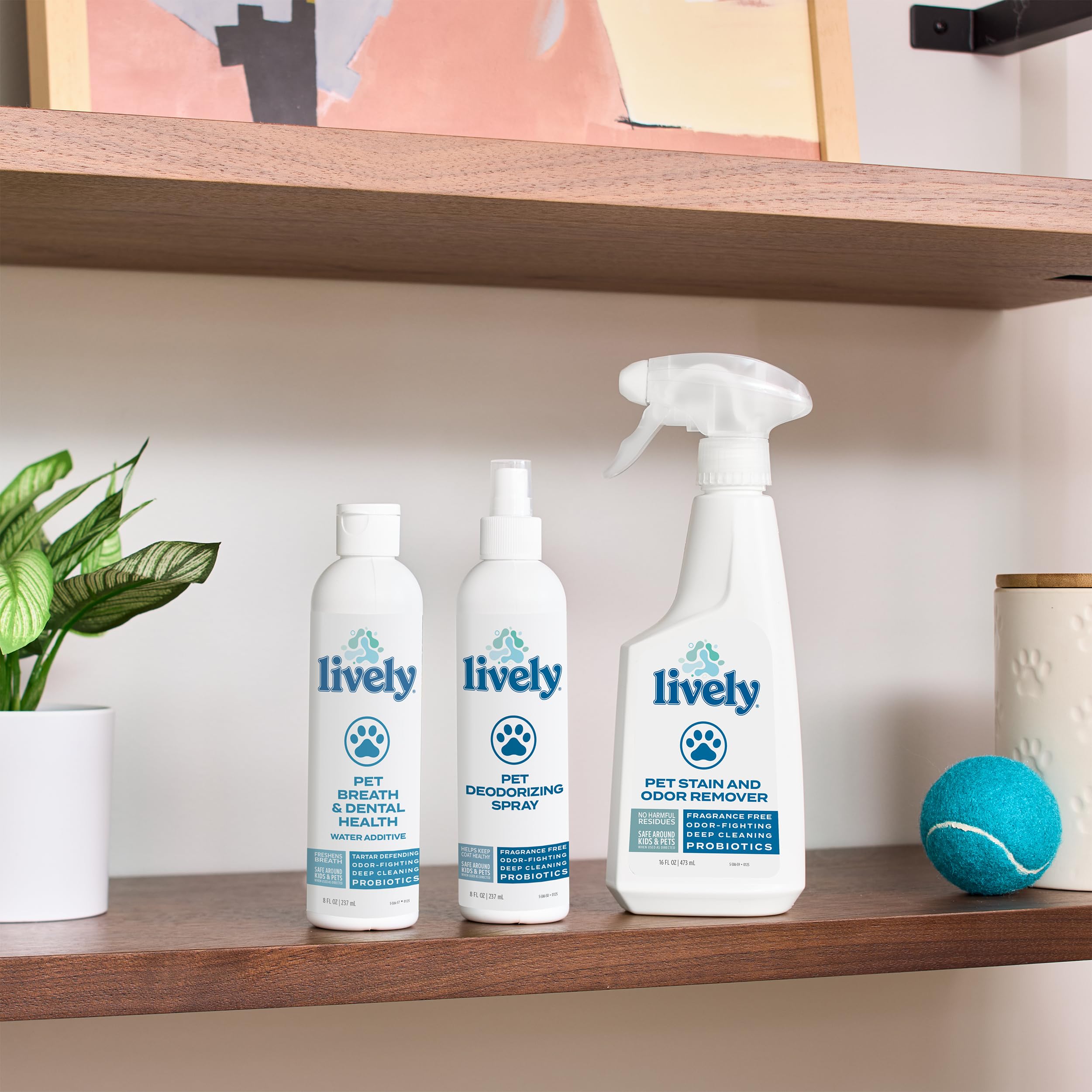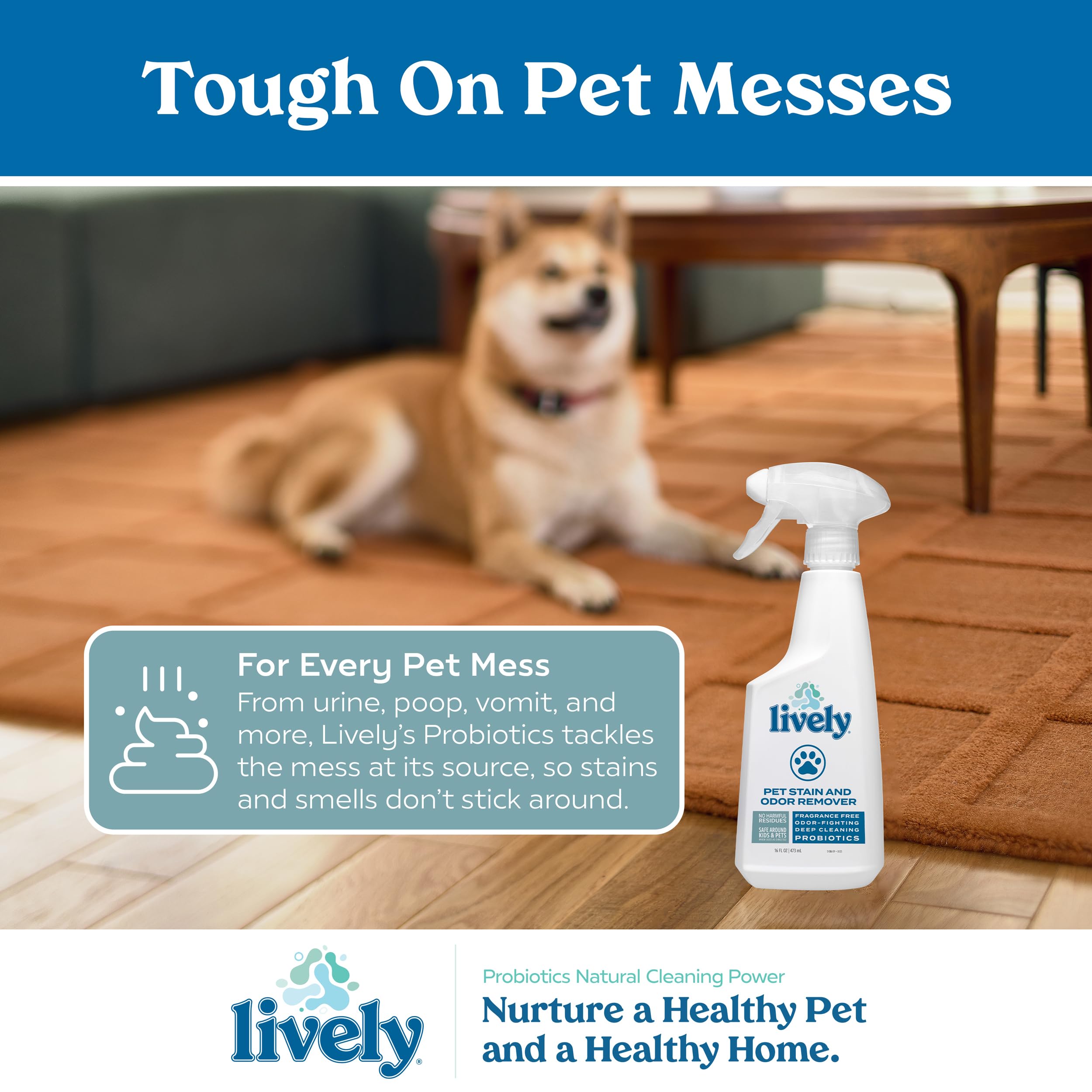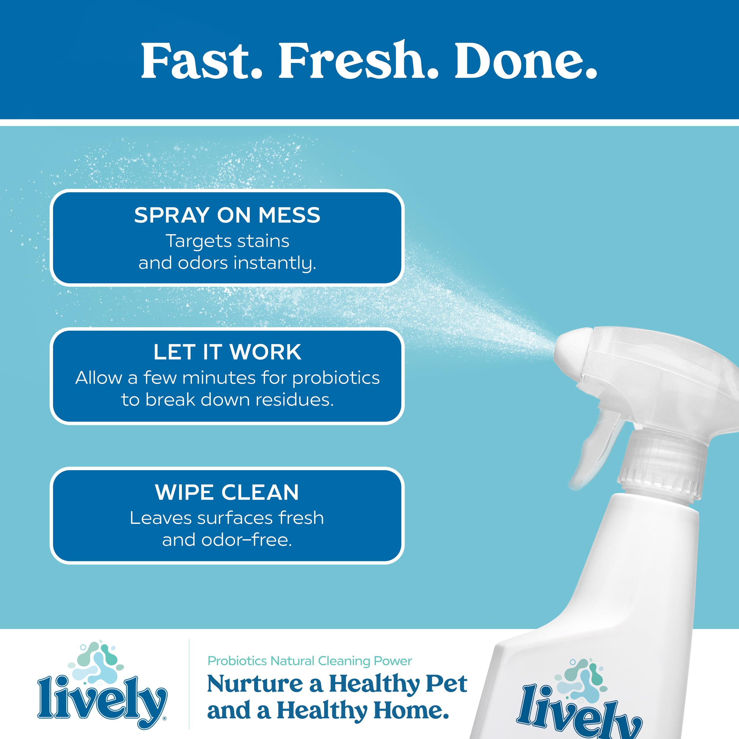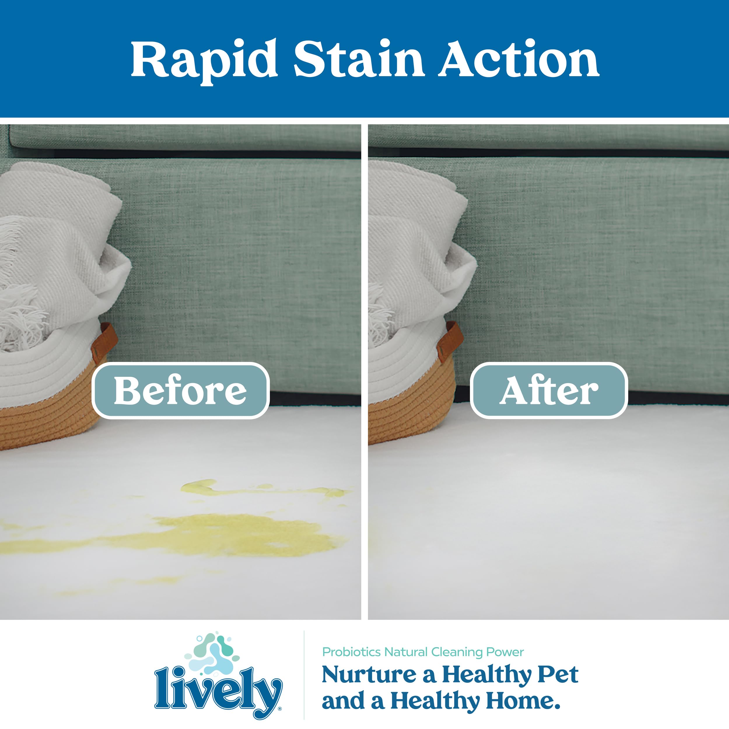 From little puppy puddles to those unexpected kitty slip-ups, we’ve got you covered. Lively Pet Stain & Odor Remover breaks down troublesome spots at a microscopic level—helping restore your favorite carpets and fabrics to their former glory, all without harsh residues or overpowering perfumes.