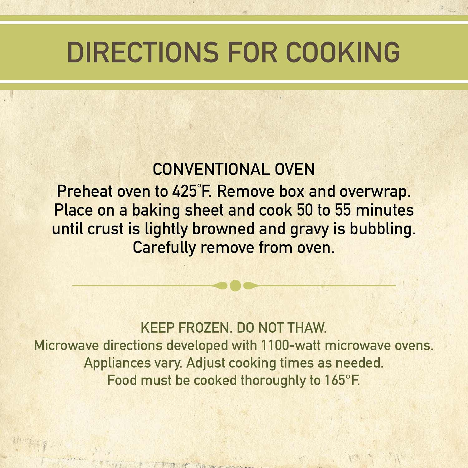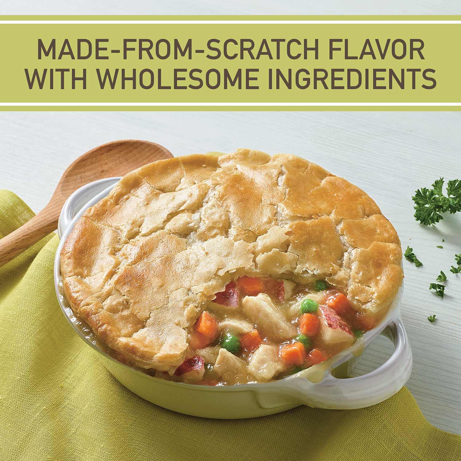 Blake's All Natural Chicken Pot Pie is on the menu, so bring your appetite. Made using a family recipe passed down through generations, this frozen meal contains white meat chicken, garden vegetables, made from scratch gravy and a flaky pastry crust. Blake's only uses the finest ingredients with no artificial flavors, colors or preservatives. It makes for delicious frozen meals for you and your family. Preparation couldn’t be easier. Simply heat the chicken pot pie in the oven according to package instructions for warm, delicious meals. Pot pies make for convenient frozen dinners and lunches that everyone will love. Trust the cooking to Blake’s and give yourself a little room to relax.
