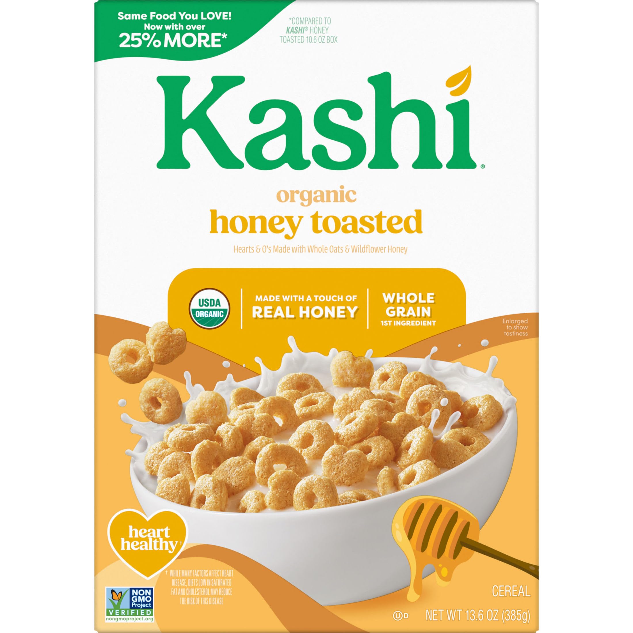Sweet like honey and made with love! Wake up and enjoy Kashi Honey Toasted cereal made with a touch of real wildflower honey and whole grain as the first ingredient. Crafted in O’s and heart shapes, the whole family will love this organic breakfast cereal that's also heart healthy (while many factors affect heart disease, diets low in saturated fat and cholesterol may reduce the risk of this disease). Vegetarian and Non-GMO Project Verified, it combines delicious, high-quality ingredients that deliver tasty nutrition; Pack reusable baggies of this low fat cereal in your backpack for a treat between meals. Each nourishing bite of this toasted cereal packs in honey flavor and organic ingredients you can feel good about. Kids and adults alike love the fun shapes and sweet taste in each spoonful with your favorite milk. Whether you’re starting or ending your day, Kashi Honey Toasted cereal is a wholesome choice.