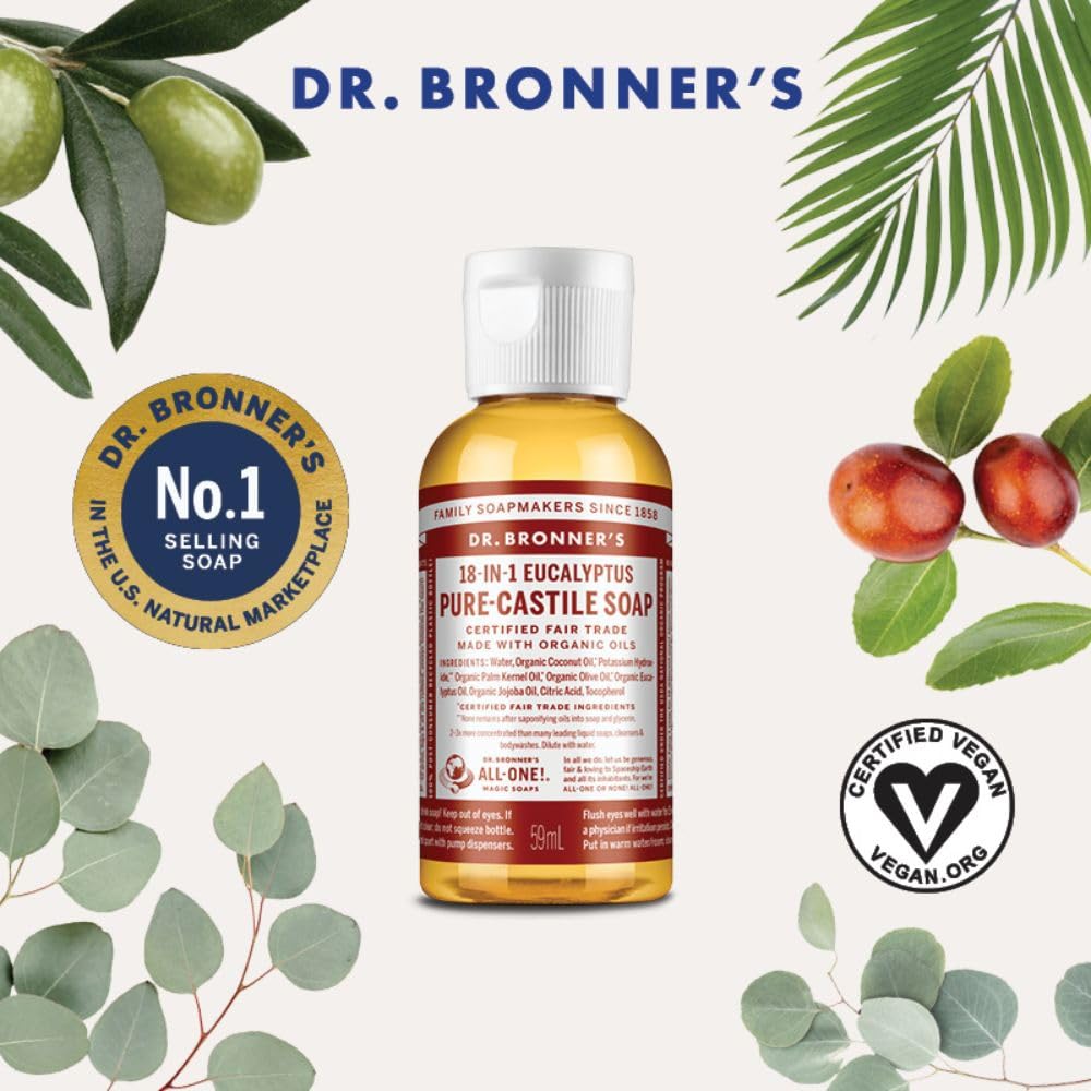 Dr. Bronner's - Pure-Castile Liquid Soap (Eucalyptus, 2 Ounce) - Made with Organic Oils, 18-in-1 Uses: Face, Body, Hair, Laundry, Pets and Dishes, Concentrated, Vegan, Non-GMO