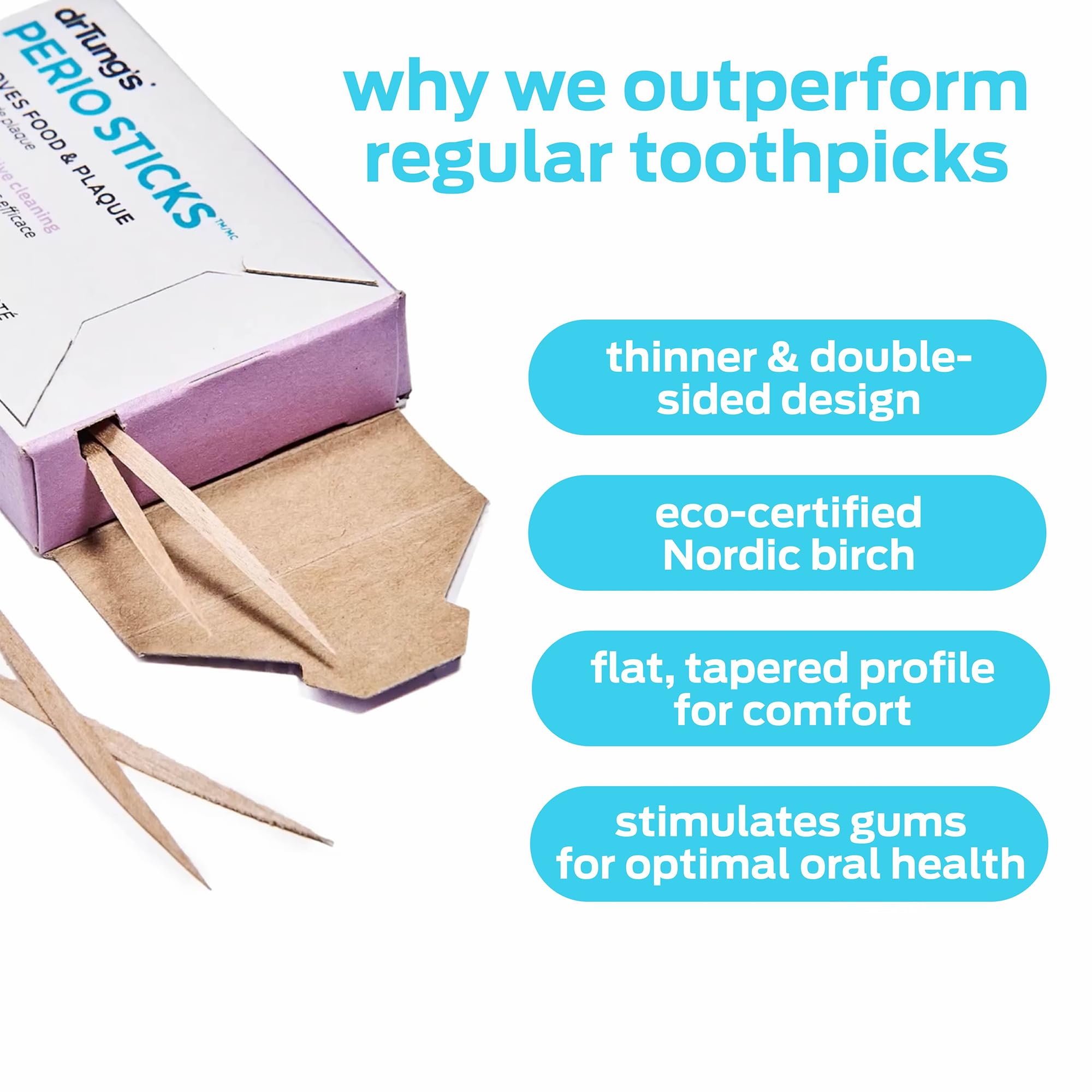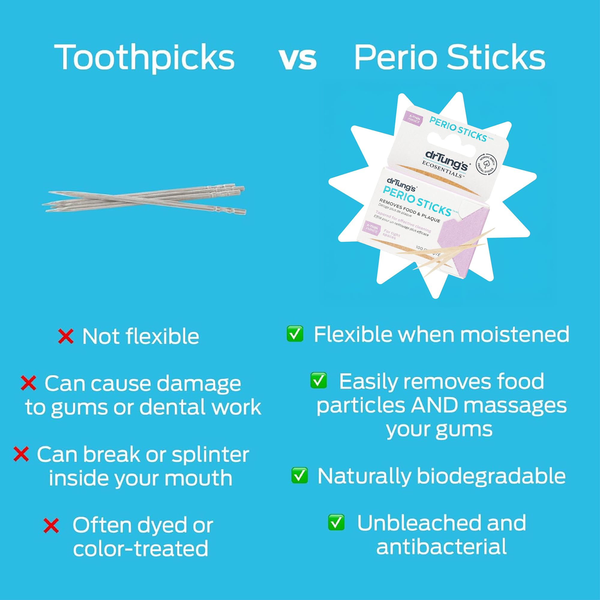 drTung's Dental Sticks for Teeth & Gum Cleaning - Toothpicks for Oral Care, Soft Floss Picks for Teeth, Interdental Plaque & Food Remover Tool, Perio Sticks - X-Thin, Bulk 100 Count (Pack of 6)