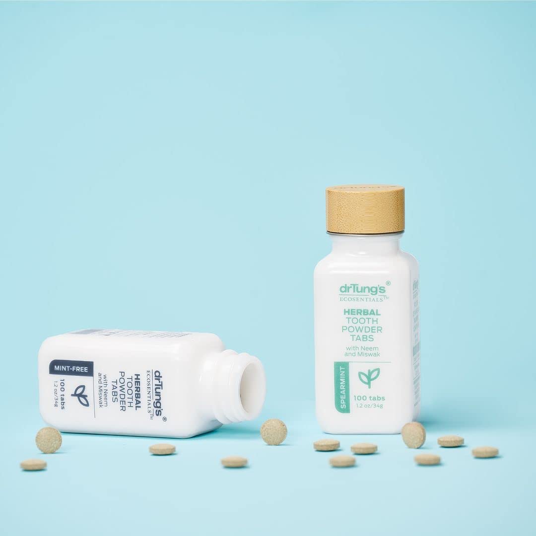 drTung's Herbal Toothpaste Tablets - Toothpaste Tabs for Dry Mouth Relief, Natural Tooth Powder Tablets for Fresh Breath, Fluoride Free, Travel Size, Vegan, Non-GMO - Spearmint (100 Tabs)