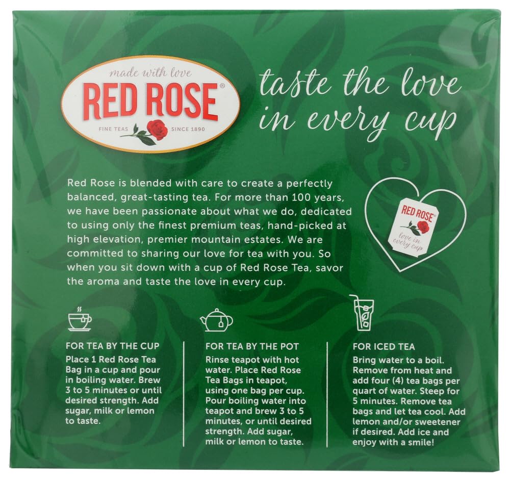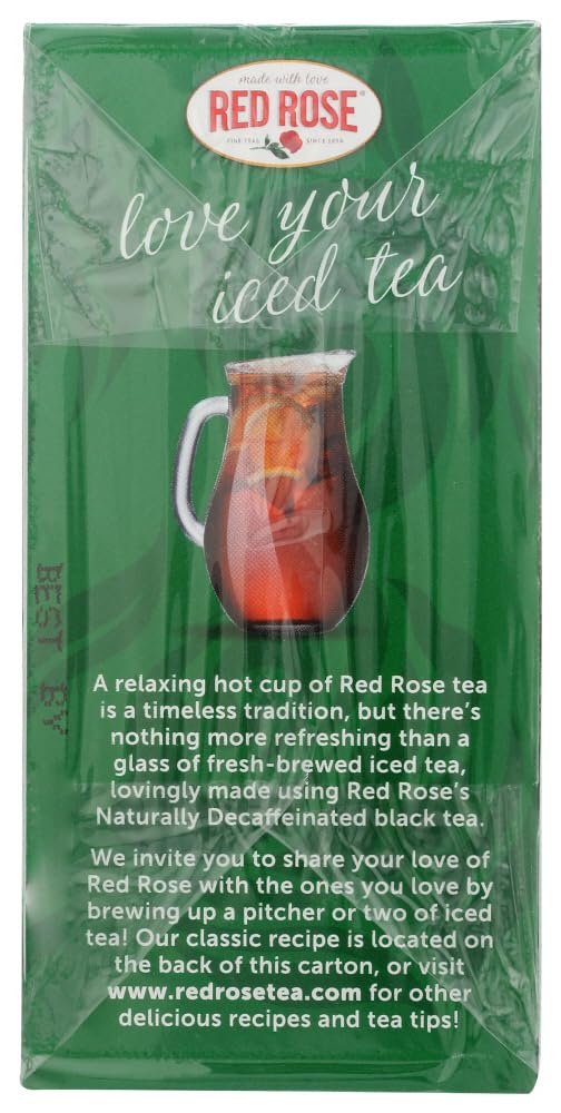 Red Rose Naturally Decaffeinated Tea Bags - | Kosher | Naturally Decaffeinated for Full Mountain Estate Flavor |Premium blended, mountain estate orange pekoe & pekoe cut black tea.