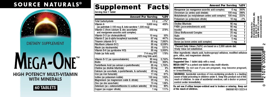 Source Naturals Mega-One Multi-Vitamin with Minerals* - 60 Tablets