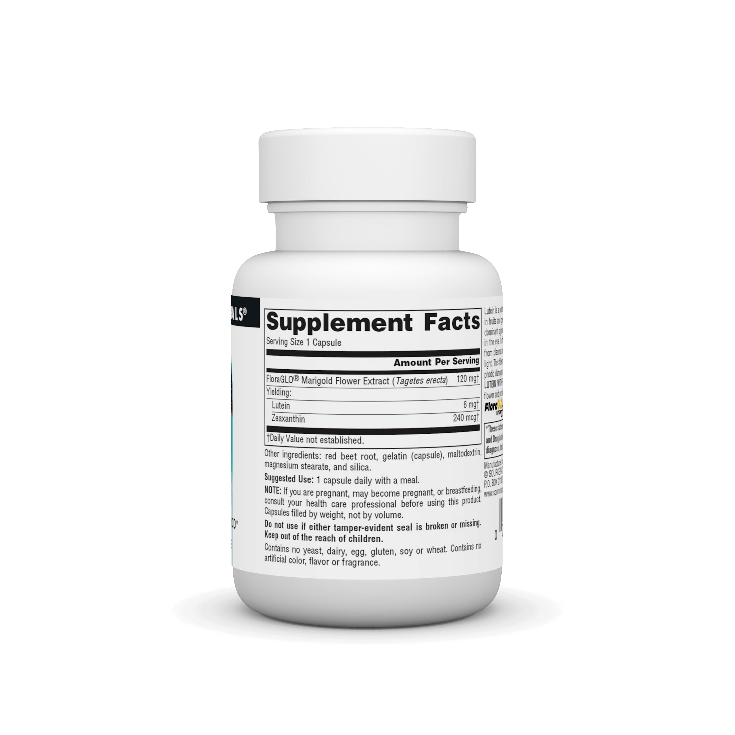 Lutein is a potent antioxidant carotenoid found in abundance in fruits and green leafy vegetables. Lutein is also one of the dominant pigments found in the macular region of the retina in the eye. In the macula, lutein is selectively accumulated from plasma and filters out visible blue light and ultraviolet light. This filtering process serves to protect the retina from photic damage or other oxidative damage. Source Naturals Lutein with FloraGLO is extracted from the marigold flower and purified by an exclusive patented process (U.S. Patent No. 5,382,714). The suggested use is 1 capsule daily with meals. If you have any questions please contact our in-house customer service team.