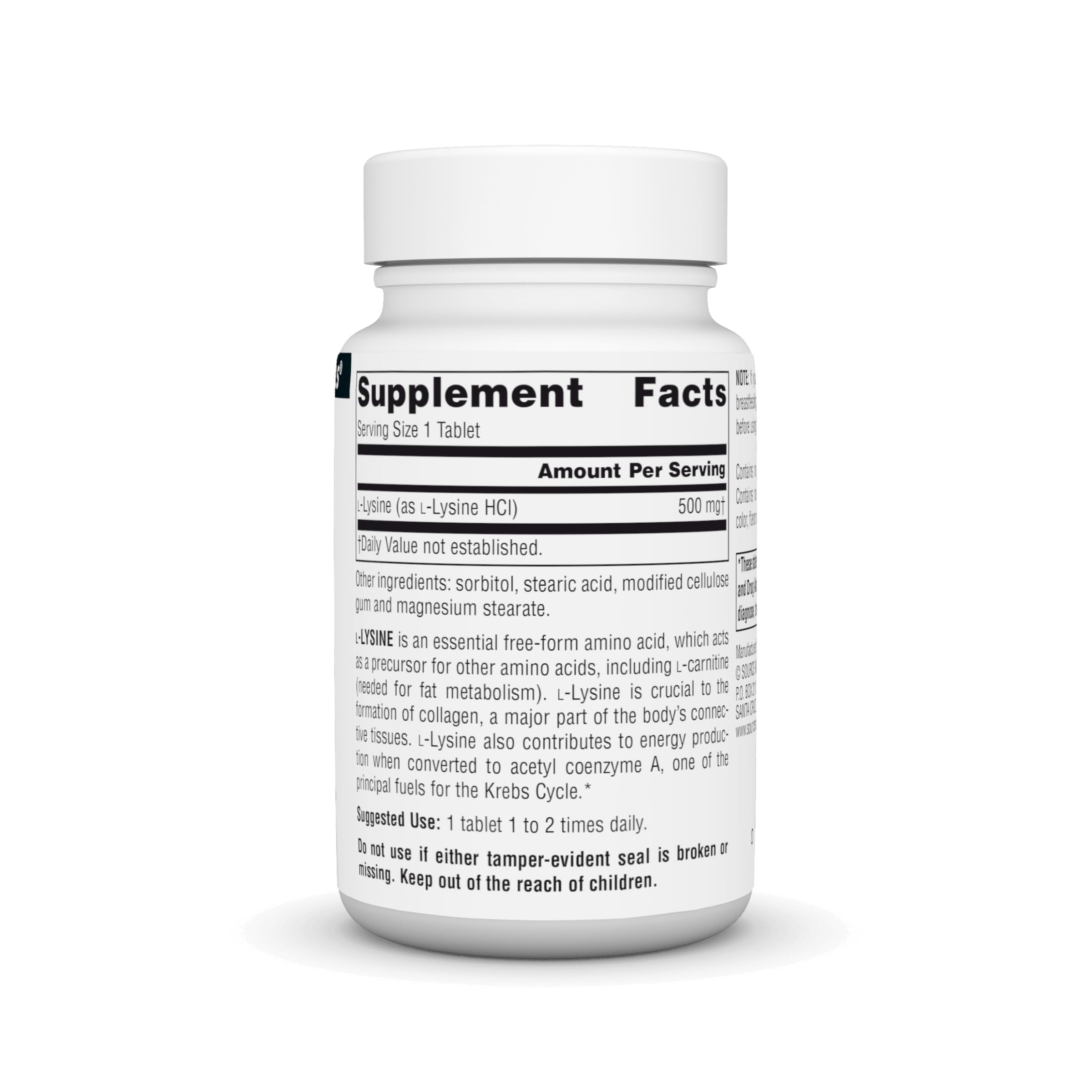 Source Naturals L-Lysine Free Form -Amino Acid Supplement Supports Energy Formation & Collagen* - 500 mg- 50 Tablets
