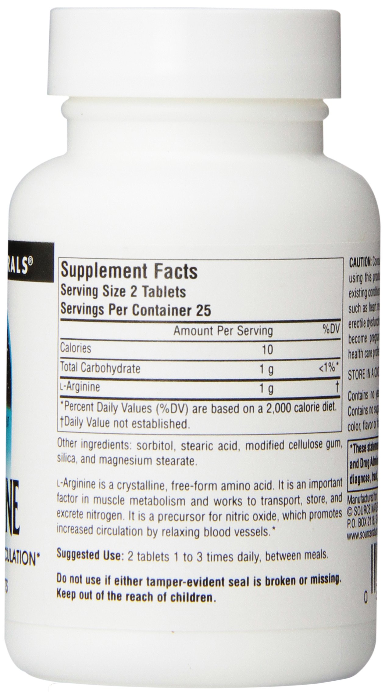 Source Naturals L-Arginine, 500mg, 50 Tablets (Pack of 2)