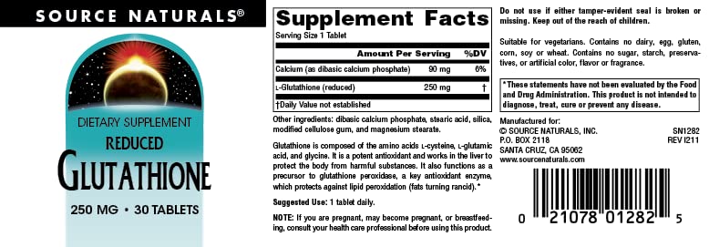 Source Naturals Glutathione, Supplement for Liver Support, 250mg - 30 Tablets