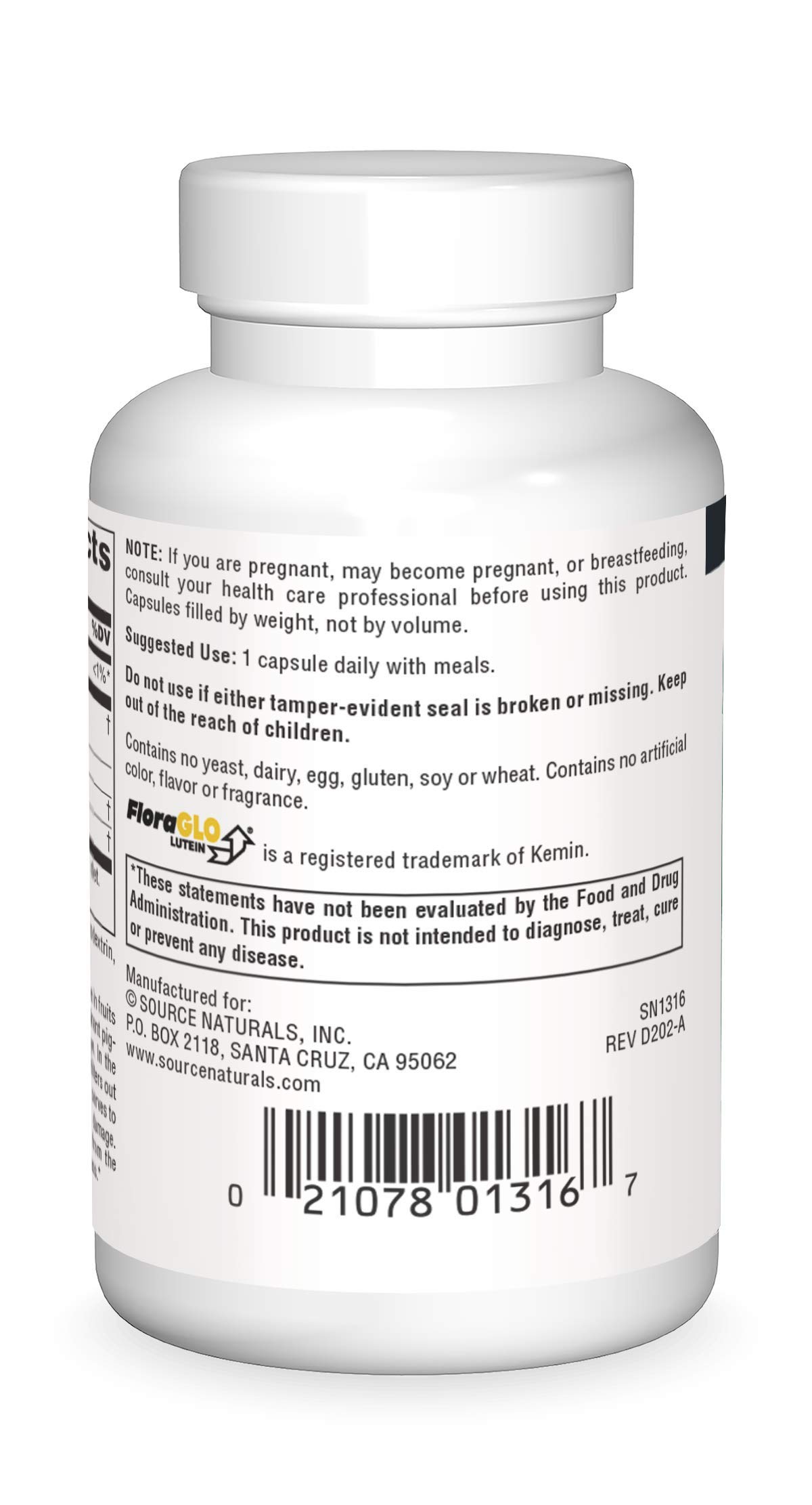 Source Naturals Lutein with FloraGLO 20 mg Antioxidant Carotenoid - 30 Capsules