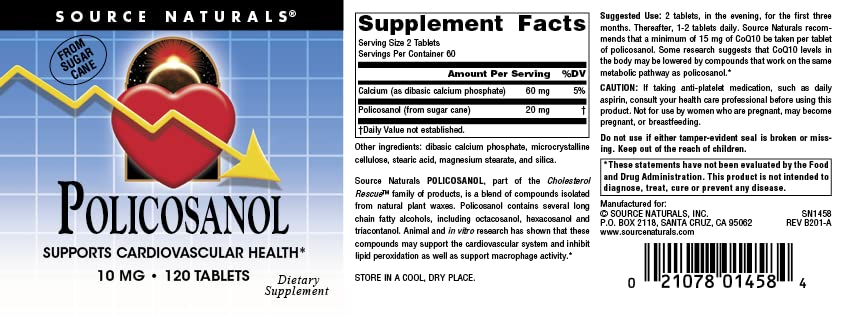Source Naturals Policosanol Supports Cardiovascular Health*, 10 Mg -120 Tablets