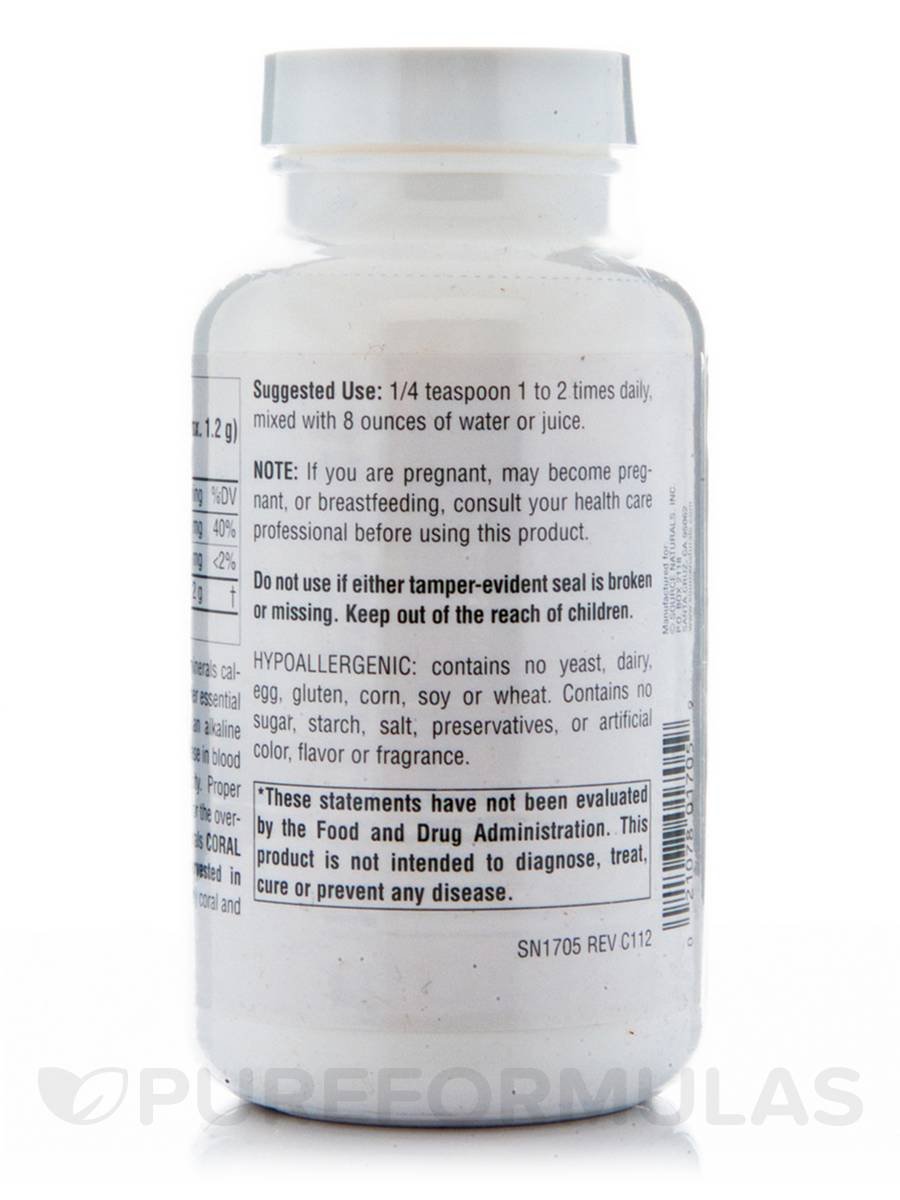Dietary supplement. Coral calcium contains the alkaline minerals calcium and magnesium, as well as other essential trace minerals. An initial study on an alkaline mineral blend demonstrated an increase in blood alkalinity (pH) and buffering capacity. Proper alkalinity (pH) of the blood is critical for the overall health of the body. (These statements have not been evaluated by the Food and Drug Administration. This product is not intended to diagnose, treat, cure or prevent any disease.) Source Naturals Coral Calcium : it is harvested in Okinawa, Japan from fossilized (dead) coral and is not harmful to living coral. Hypoallergenic: Contains no yeast, dairy, egg, gluten, corn, soy or wheat. Contains no sugar, starch, salt, preservatives, or artificial color, flavor or fragrance.