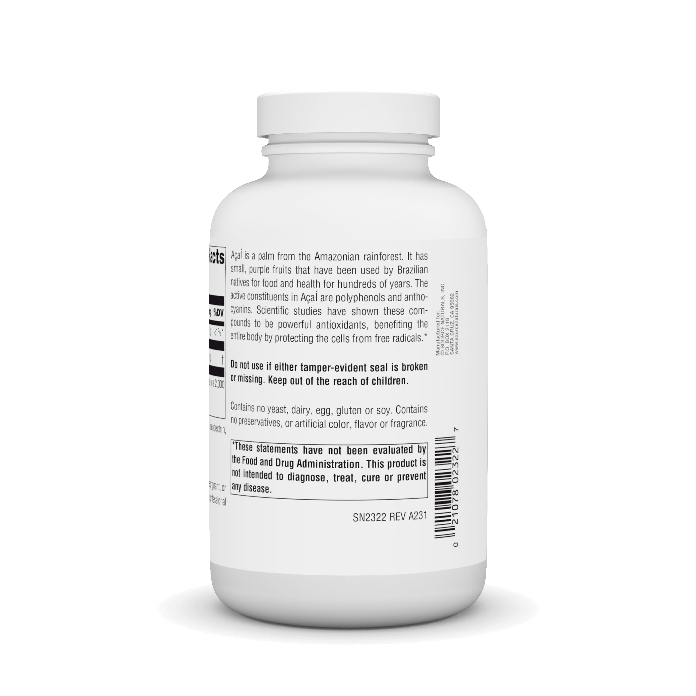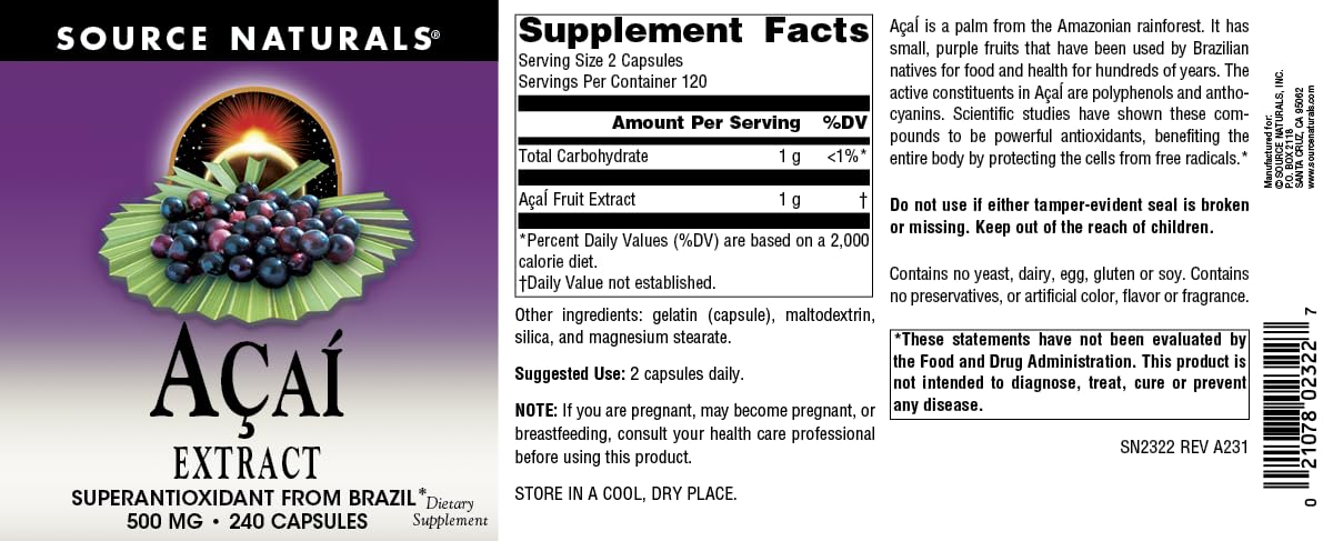 Source Naturals Acai Extract, Superantioxidant from Brazil* - 500 mg - 240 Vegetarian Capsules