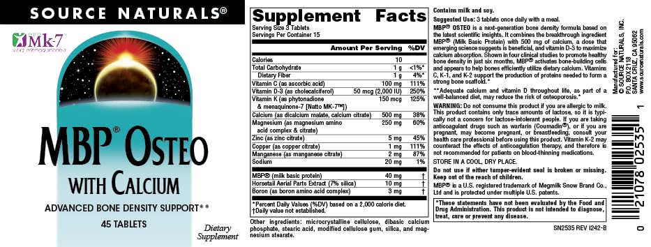 Source Naturals MBP Osteo with Calcium, Advanced Bone Density Support*, 45 Tablets