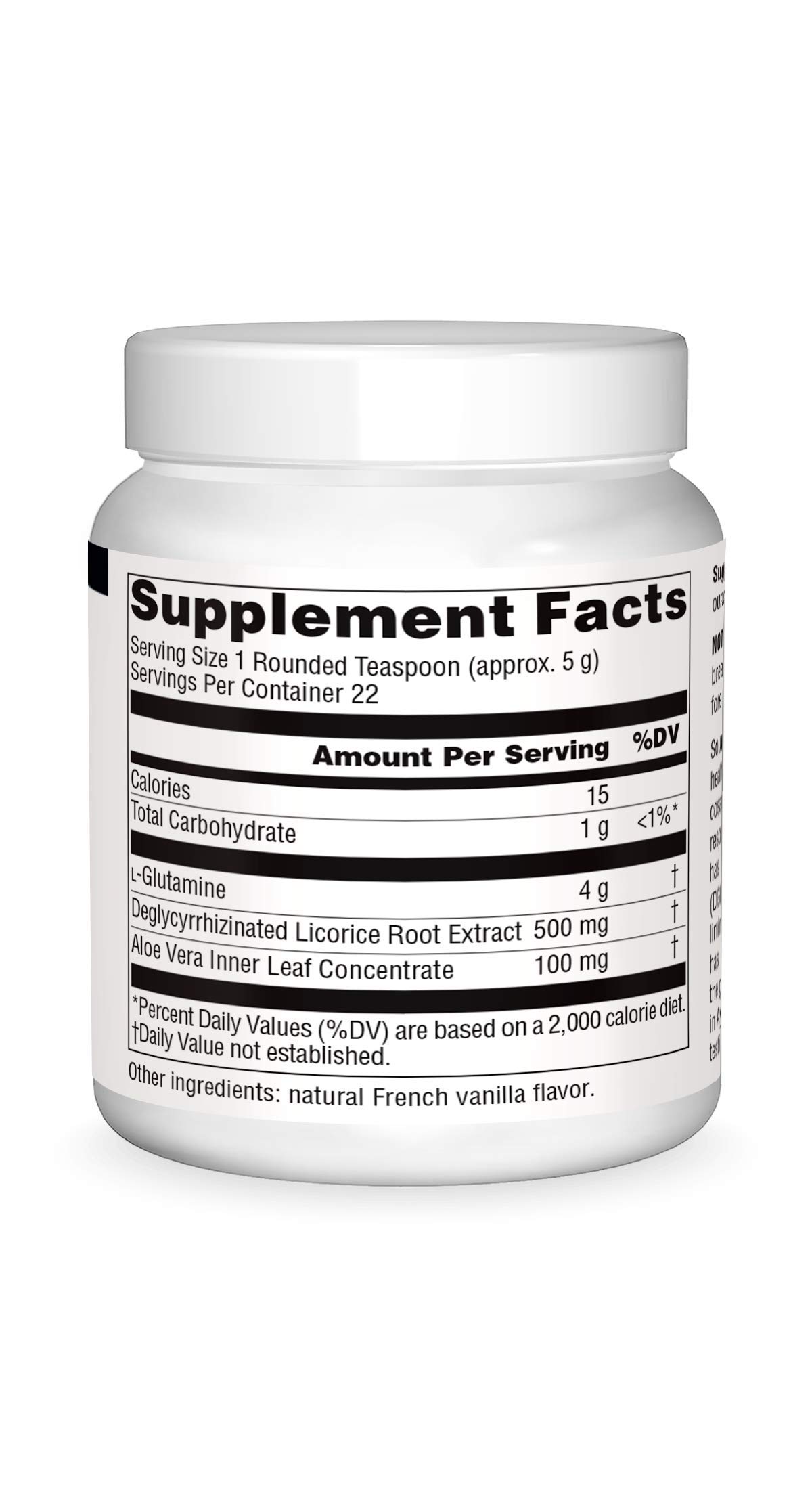 Source Naturals Glutamine Comfort supports a healthy gut barrier by providing nourishment for the mucosal cells that form the gastrointestinal lining and are responsible for healthy permeability. Preliminary research has shown that glutamine and deglycyrrhizinated licorice (DGL) may support healthy intestinal mucosa. And, preliminary in vitro research on human colonic epithelial cells has shown that aloe vera may have antioxidant effects in the gut. Aloe vera has been used traditionally for centuries in Ayurvedic and Chinese medicines for digestive and intestinal support.*