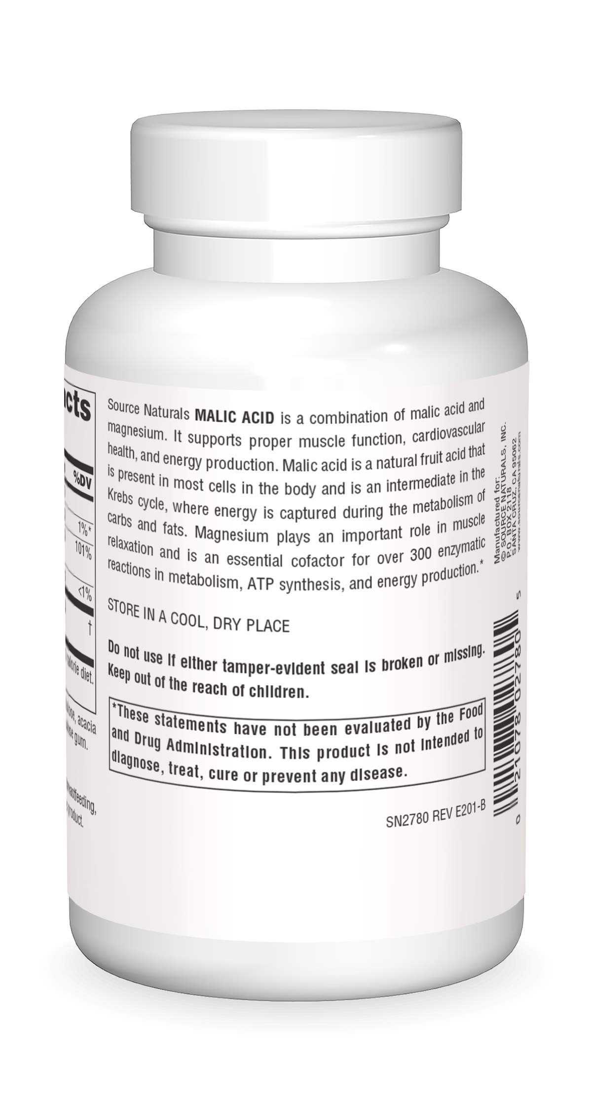 Source Naturals Malic Acid, Supports Muscles and Energy Production*, 2,500 mg - 120 Tablets