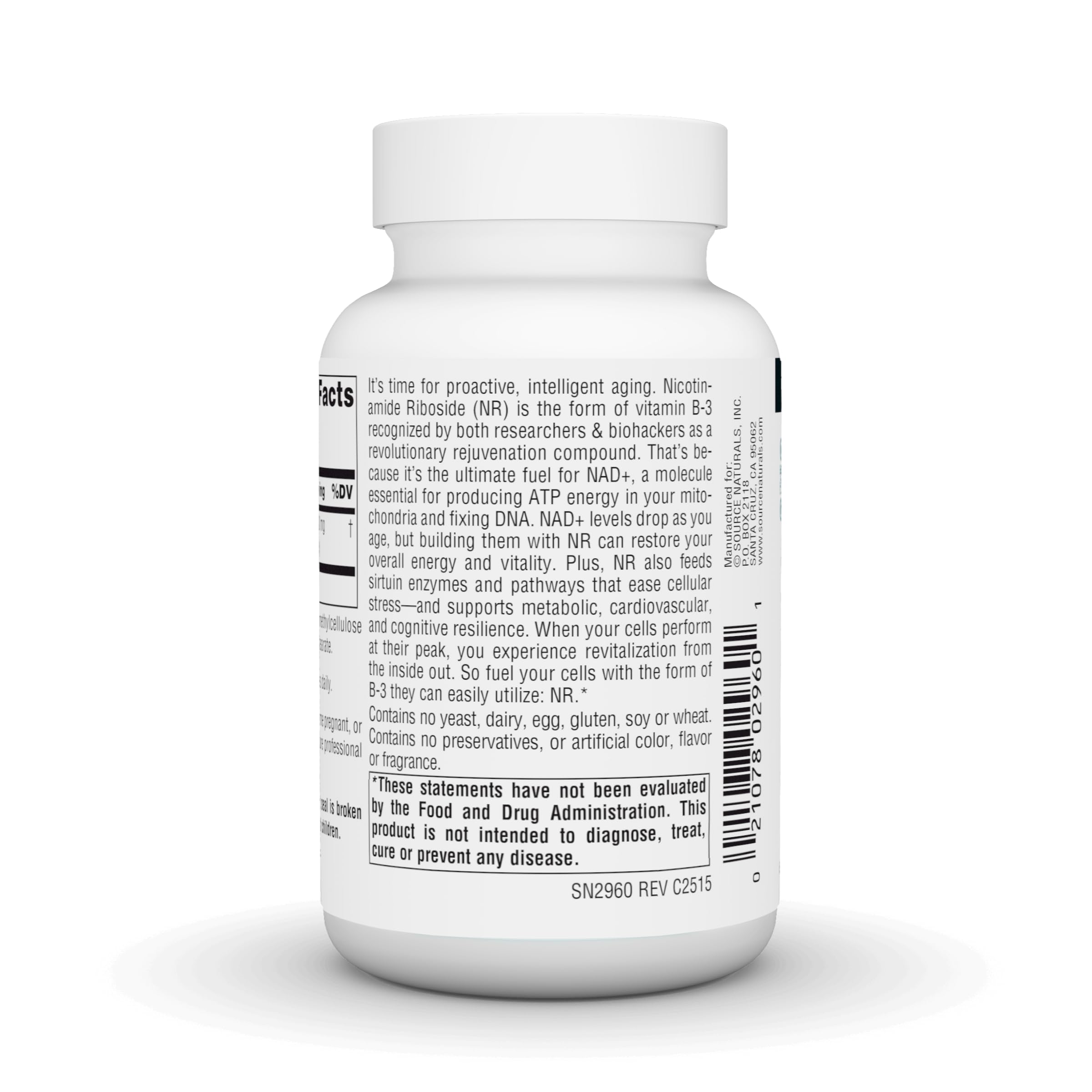 Source Naturals NR, Nicotinamide Riboside, Vegan Dietary Supplement for Mitochondria, Healthy Aging, Cells & Energy*, Premier Fuel for NAD+ Levels, 300 mg - 60 Vegan Capsules