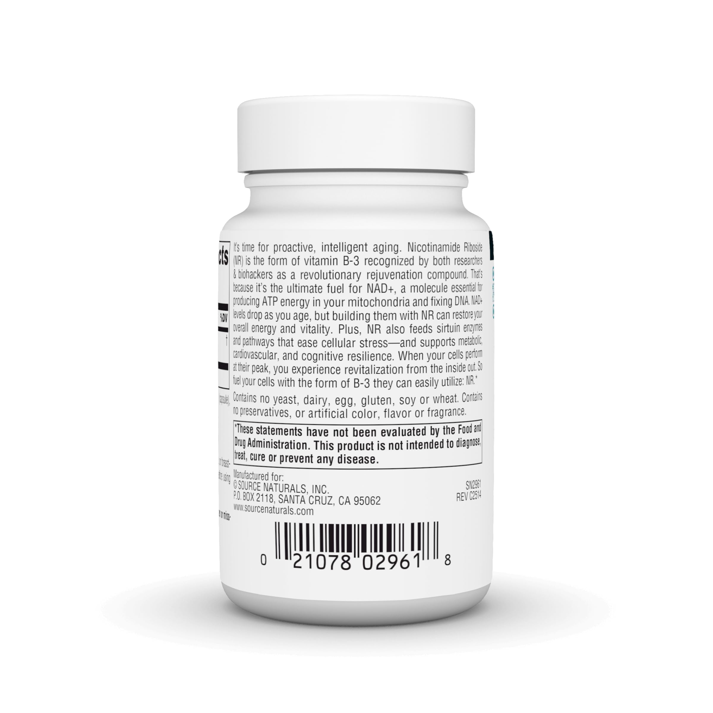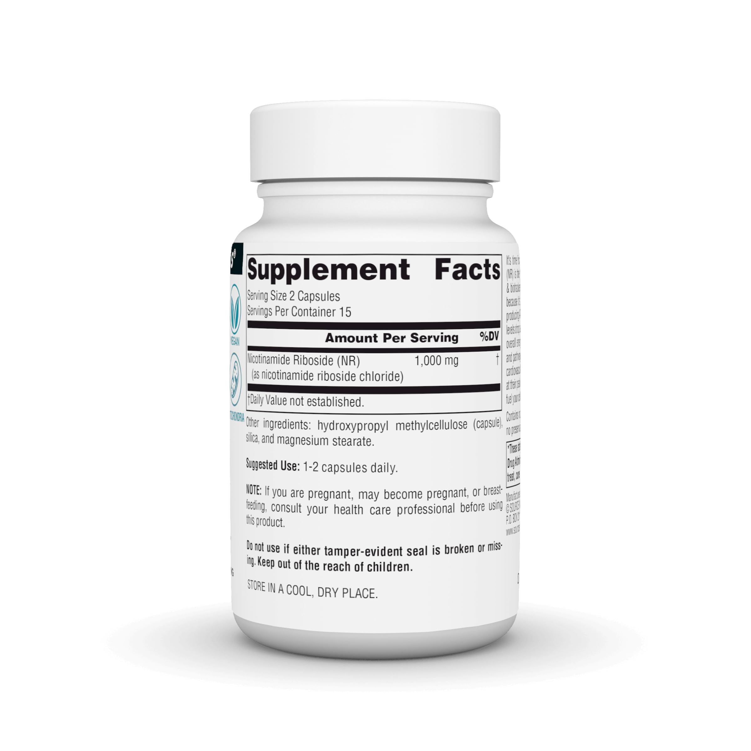 Source Naturals NR, Nicotinamide Riboside, Vegan Dietary Supplement for Mitochondria, Healthy Aging, Cells & Energy*, Premier Fuel for NAD+ Levels 1,000 mg per Serving - 30 Vegan Capsules