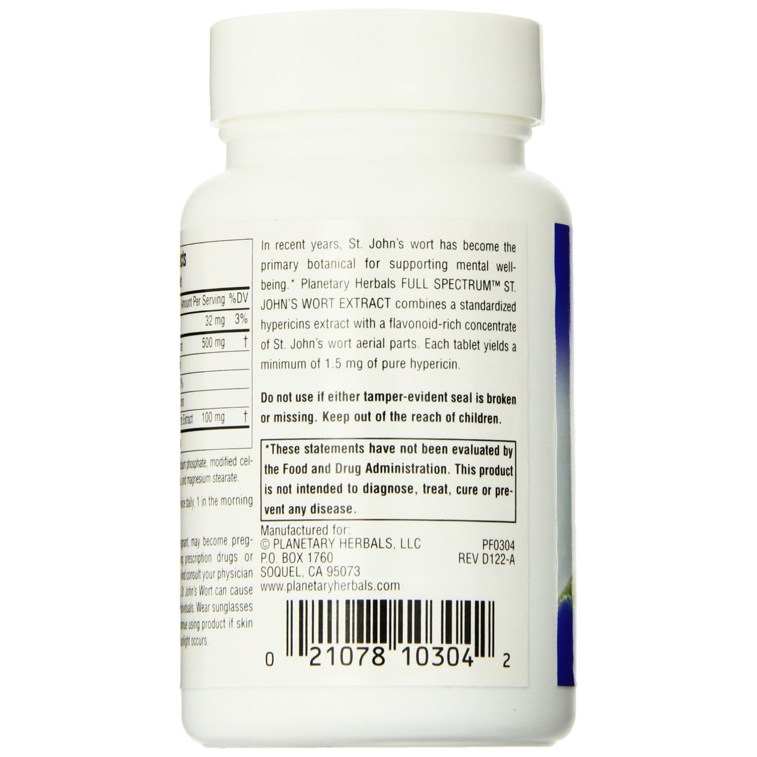 In recent years, St. John's wort has become the primary botanical for supporting mental well-being. Planetary Herbals Full Spectrum(TM) St. John's Wort Extractcombines a standardized hypericin extract with a flavonoid-rich (4:1) concentrate of blossoming St. John's wort aerial parts. Each tablet contains a minimum of 1.5 mg of pure hypericin.