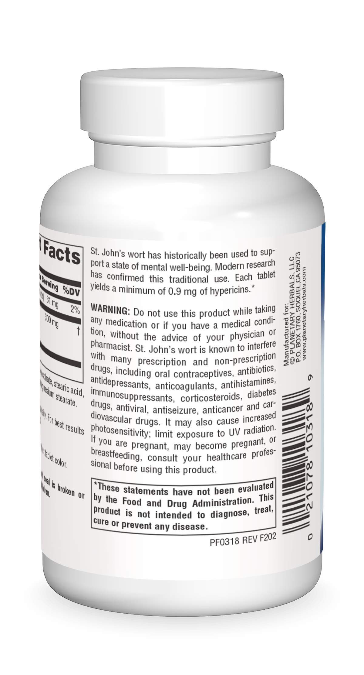 Planetary Herbals St. John's Wort Extract Tablets, 300 mg, 180 Count