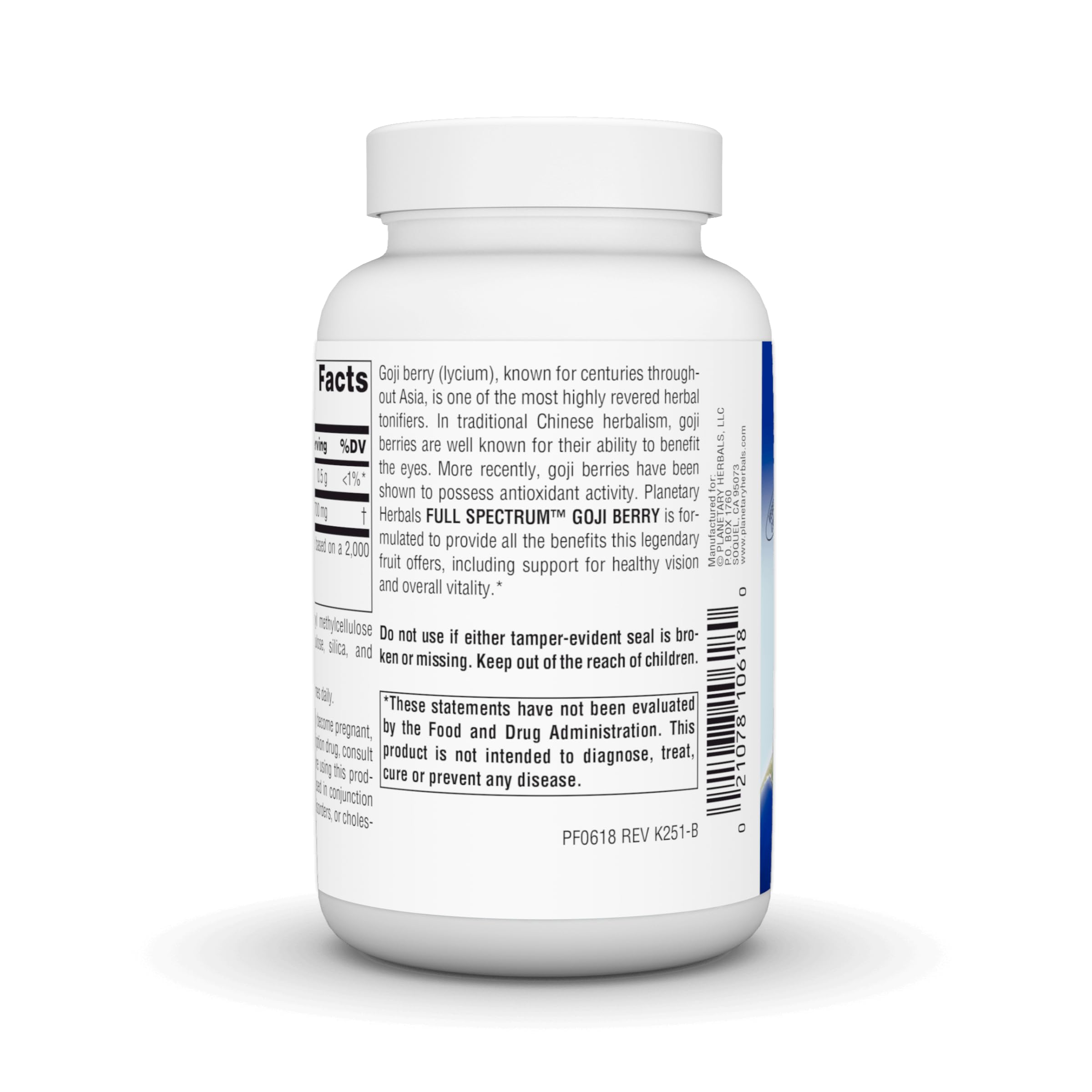 Goji berry (lycium barbarum and lycium chinensis) is one of the most highly revered of herbal tonifier known for centuries throughout Asia. Planetary herbals full spectrum goji berry is a comprehensive blend utilizing the two primary species of goji, with polyphenols, carotenoids and other antioxidants, and formulated to support healthy vision, strength, and all the benefits this legendary fruit offers.