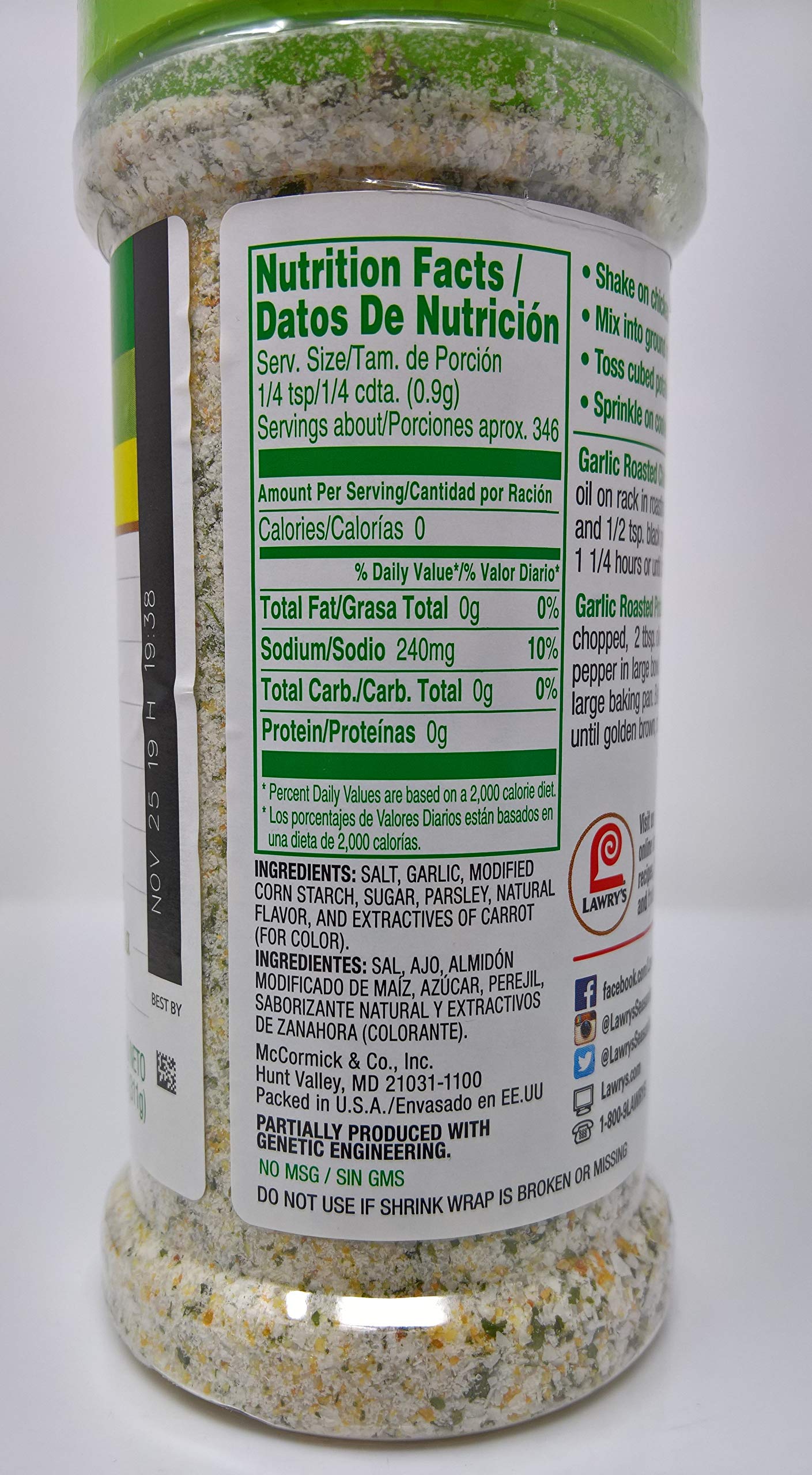 Lawry's Garlic Salt Coarse Ground With Parlsey, 6-ounce plastic shaker (Pack of 12)