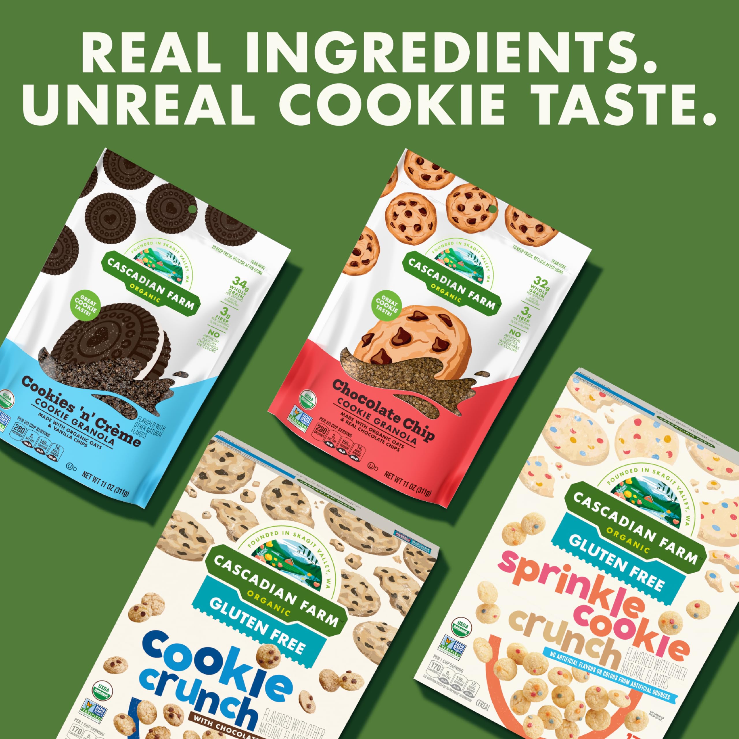 Start your mornings with a big smile and sprinkles of fun with Cascadian Farm Organic Sprinkle Cookie Crunch Cereal. This sweet, gluten free cereal has colorful sprinkles and a cookie flavored crunch your whole family can enjoy. Each serving provides 17g whole grain (at least 48g recommended daily) and has no artificial flavors or colors from artificial sources. Plus, it's Non-GMO Project Verified and certified USDA Organic. Pour a bowl with your choice of milk as part of a quick and easy gluten free breakfast. Pack handfuls of this crispy cereal in a snack tote to take the goodness to go. Always Organic. Never Ordinary. That's been our mantra since 1972. Since then, we've remained a producer of organic cereals, fruits, vegetables, granola, and snack bars. Cascadian Farm is a pioneering supporter of farmers who use practices that regenerate the land and their communities. Contains one cardboard box of crunchy Cascadian Farm Organic Sprinkle Cookie Crunch Cereal, Gluten Free, Whole Grain, 10.9 oz; perfect for instant snacking or a part of breakfast and meals.