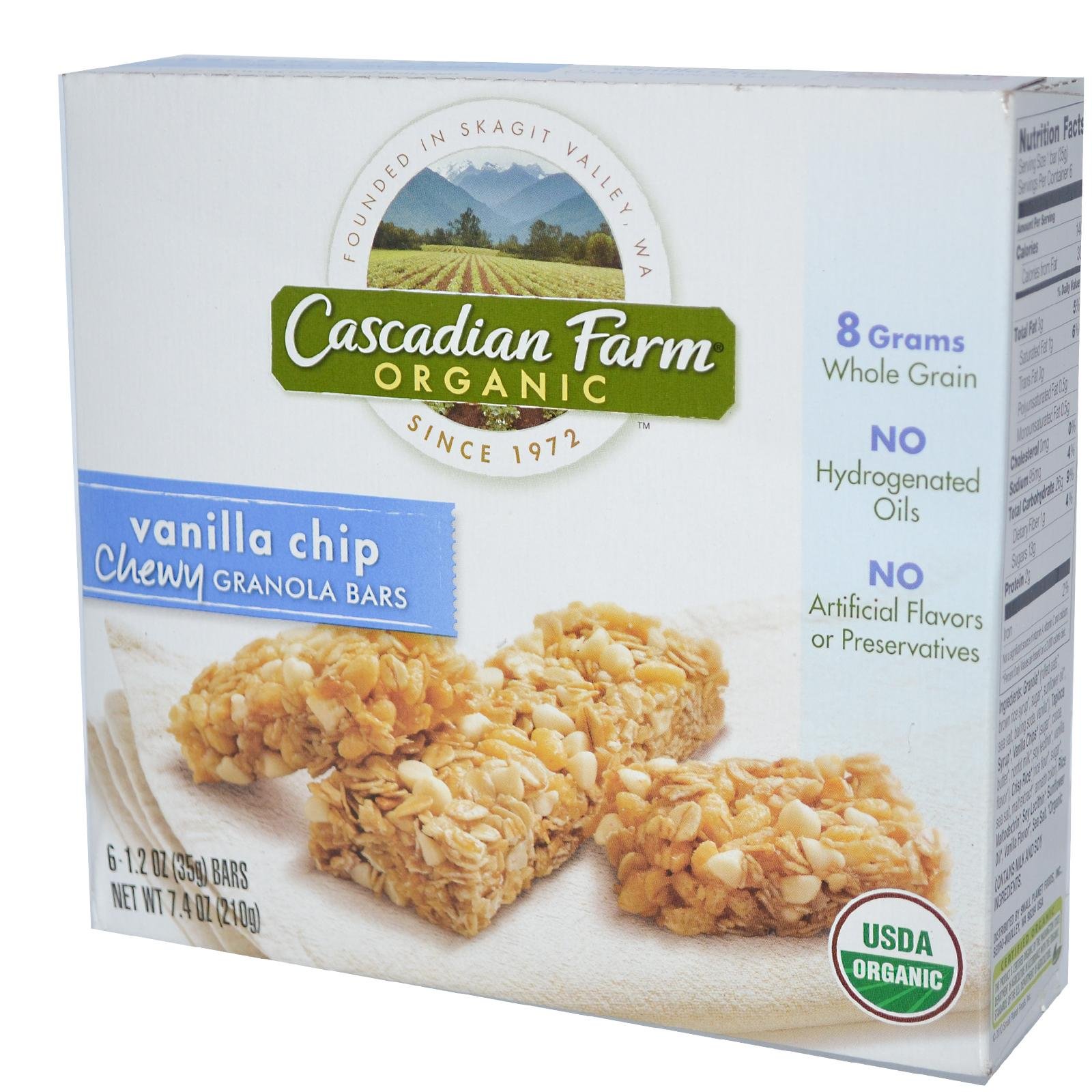 Save on cascadian farm's 12x 7. 4 oz vanilla chip granola barthe delectable taste of these vanilla chip chewy granola bars are a pure delight any time of day. : (note: this product description is informational only. Always check the actual product label in your possession for the most accurate ingredient information before use. For any health or dietary related matter always consult your doctor before use. )