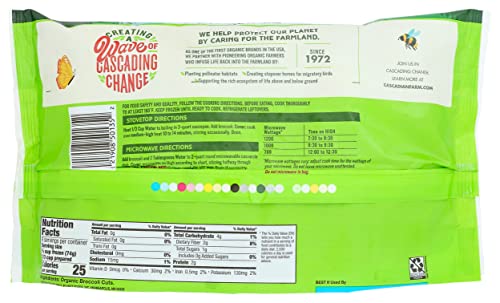 Spend less time prepping and more time around the table with Cascadian Farm Frozen Organic Broccoli Cuts. These pre-cut frozen broccoli florets are great for side dishes, soups, stews and more. Just heat these frozen vegetables on the stove or in the microwave according to the directions on pack for tender, tasty veggies in minutes. Stock up on Cascadian Farm Frozen Vegetables so you always have organic broccoli cuts on hand. Pack more of what you need into every meal with our simply delicious organic frozen vegetables. Always Organic. Never Ordinary. That's been our mantra since 1972. Since then, we’ve remained a producer of organic cereals, fruits, vegetables, granola and snack bars. Cascadian Farm is a pioneering supporter of farmers who use practices that regenerate the land and their communities.