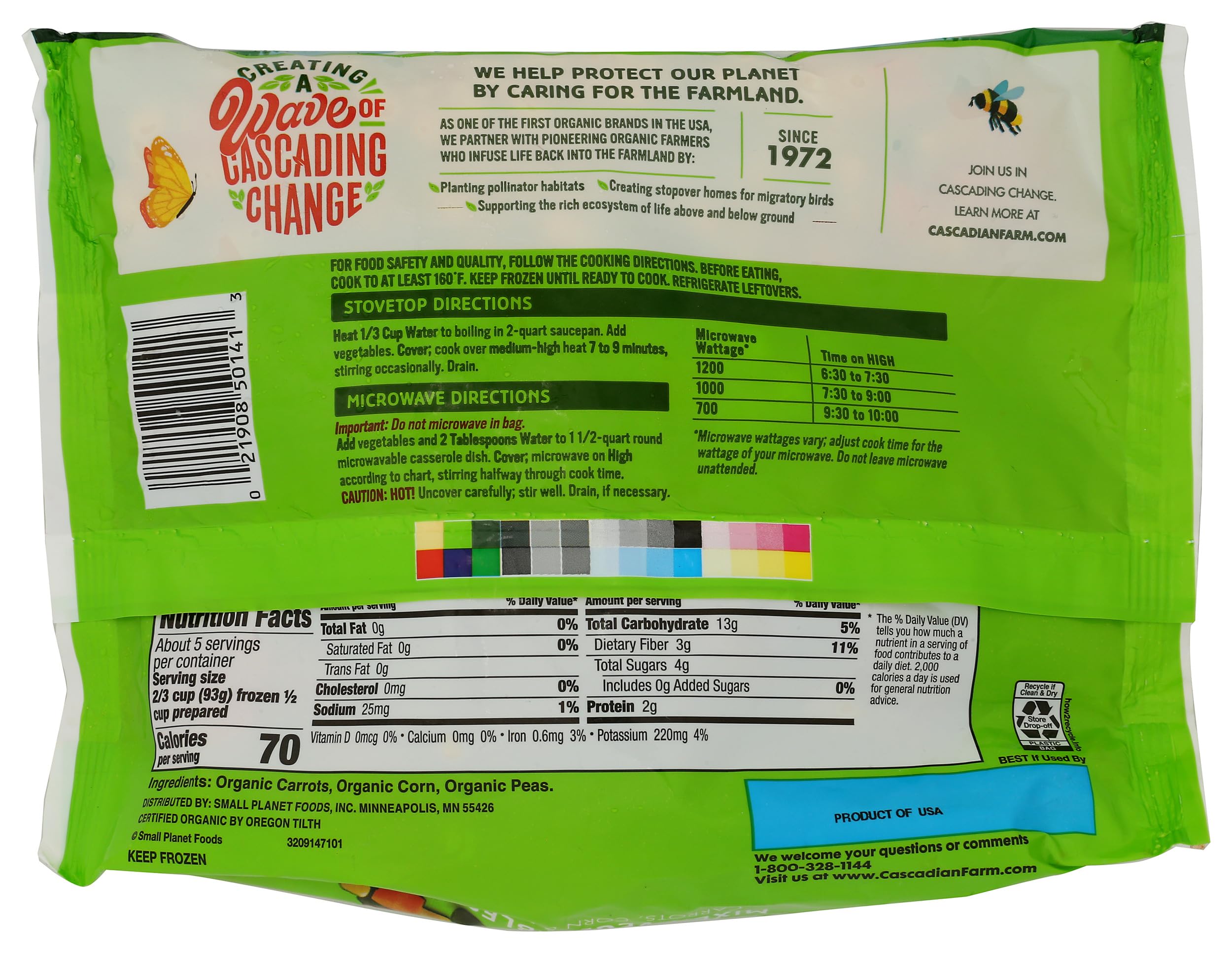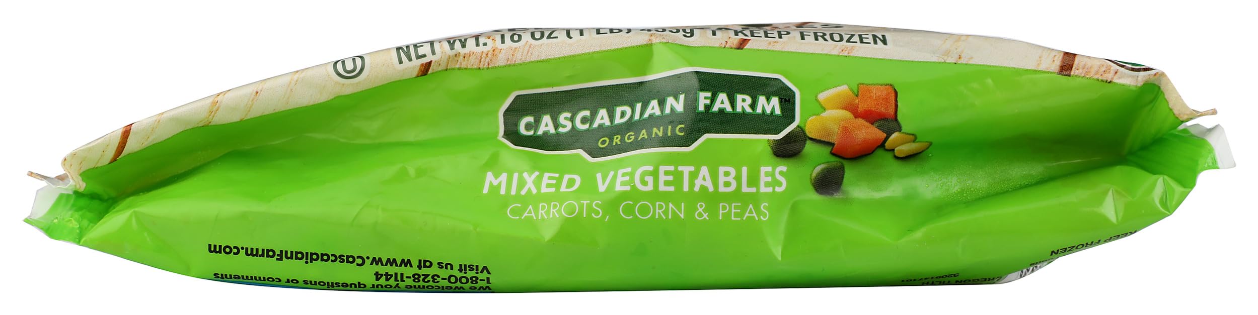 Spend less time prepping and more time around the table with frozen Cascadian Farm Organic Mixed Vegetables. This frozen veggie blend features certified USDA Organic corn, peas, and carrots. Great for soups, stews, and quick side dishes on busy weeknights, these organic vegetables are prepped and ready to cook. Follow the directions on the packaging to heat this frozen vegetable blend on the stovetop or in the microwave. Always Organic. Never Ordinary. That's been our mantra since 1972. Since then, we've remained a producer of organic cereals, fruits, vegetables, granola, and snack bars. Cascadian Farm is a pioneering supporter of farmers who use practices that regenerate the land and their communities.