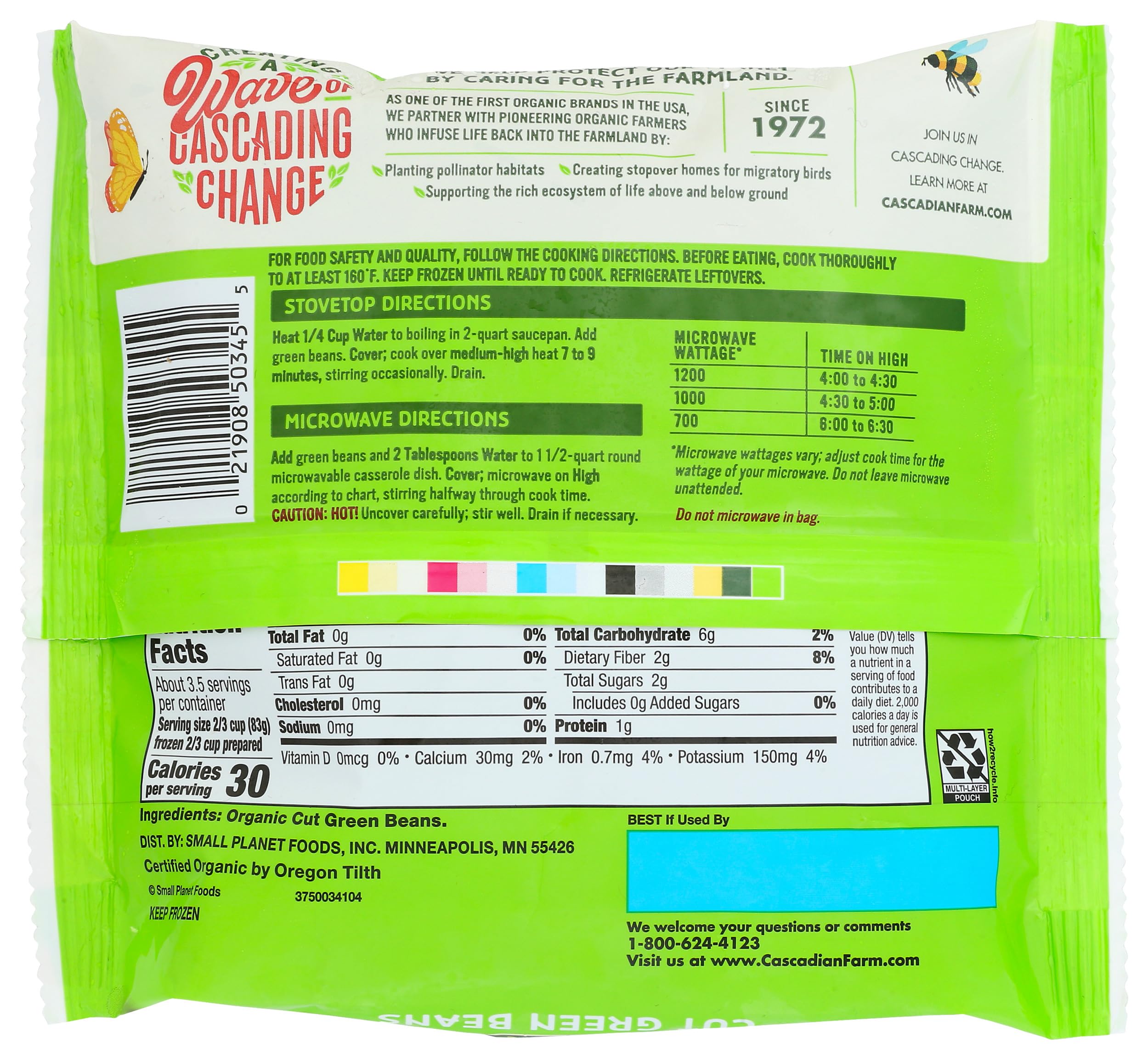 Spend less time prepping and more time around the table with Cascadian Farm Organic Frozen Cut Green Beans. Organically grown and Non-GMO Project Verified, these pre-cut organic green beans are great for side dishes, soups, stews and more. Just heat these frozen vegetables on the stove or in the microwave according to the directions on pack for tender, tasty veggies in minutes. Stock up on Cascadian Farm Frozen Veggies so you always have organic green beans on hand. Pack more of what you need into every meal with our simply delicious organic frozen vegetables. Always Organic. Never Ordinary. That's been our mantra since 1972. Since then, we’ve remained a producer of organic cereals, fruits, vegetables, granola and snack bars. Cascadian Farm is a pioneering supporter of farmers who use practices that regenerate the land and their communities.