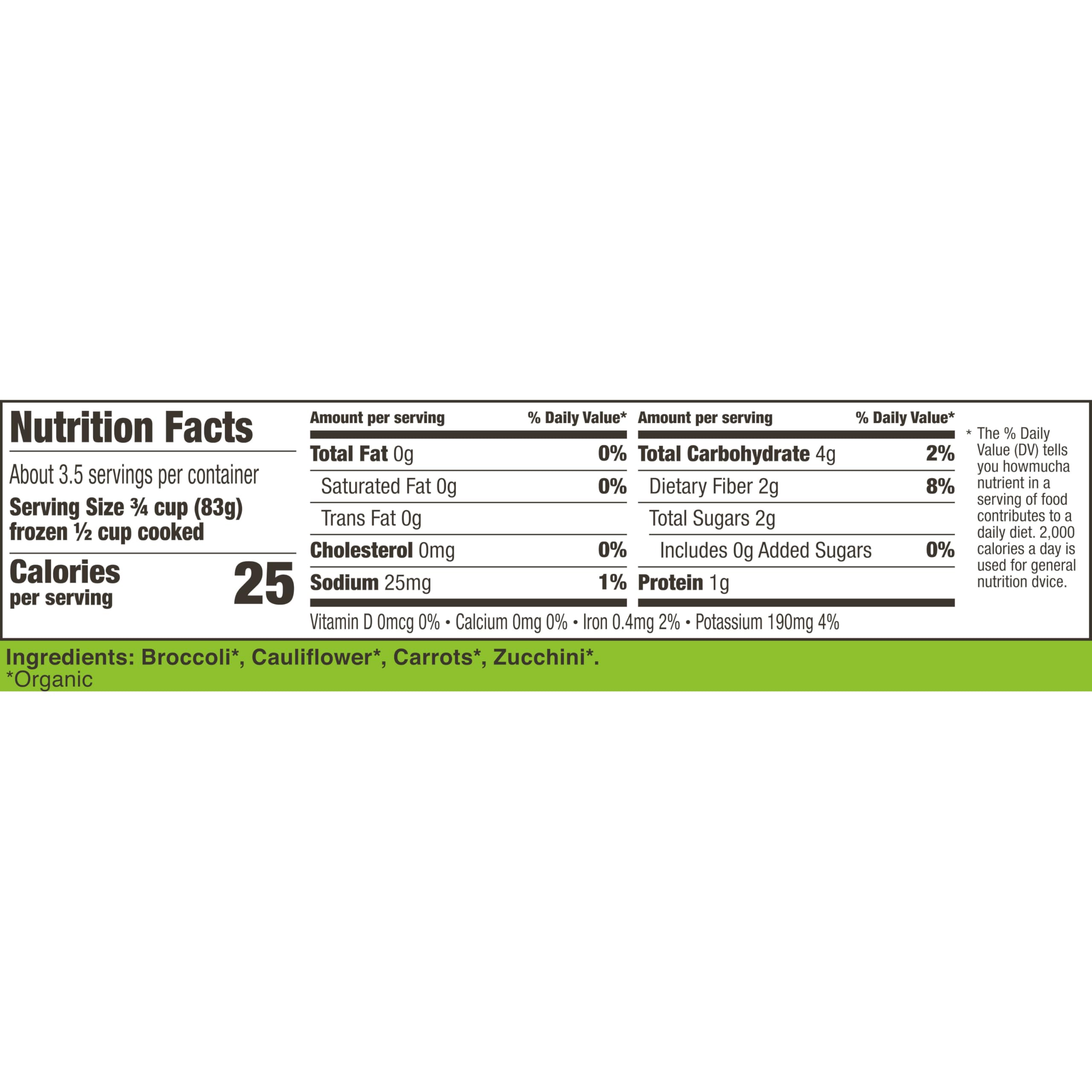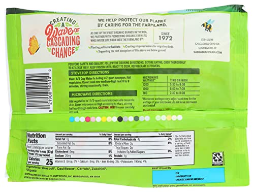 Spend less time prepping and more time around the table with Cascadian Farm Organic California-Style Frozen Vegetable Blend. Featuring a medley of organic broccoli, cauliflower, carrots, and zucchini, these frozen vegetables are great for side dishes, soups, stews, and more. Certified USDA Organic and Non-GMO Project Verified, our tasty and versatile veggies are ready to steam, roast, or saute. Simply follow the directions on the packaging to cook them on the stove top or in the microwave. Pack more of what you need into every meal with our simply delicious organic frozen vegetables. Always Organic. Never Ordinary. That's been our mantra since 1972. Since then, we've remained a producer of organic cereals, fruits, vegetables, granola, and snack bars. Cascadian Farm is a pioneering supporter of farmers who use practices that regenerate the land and their communities.